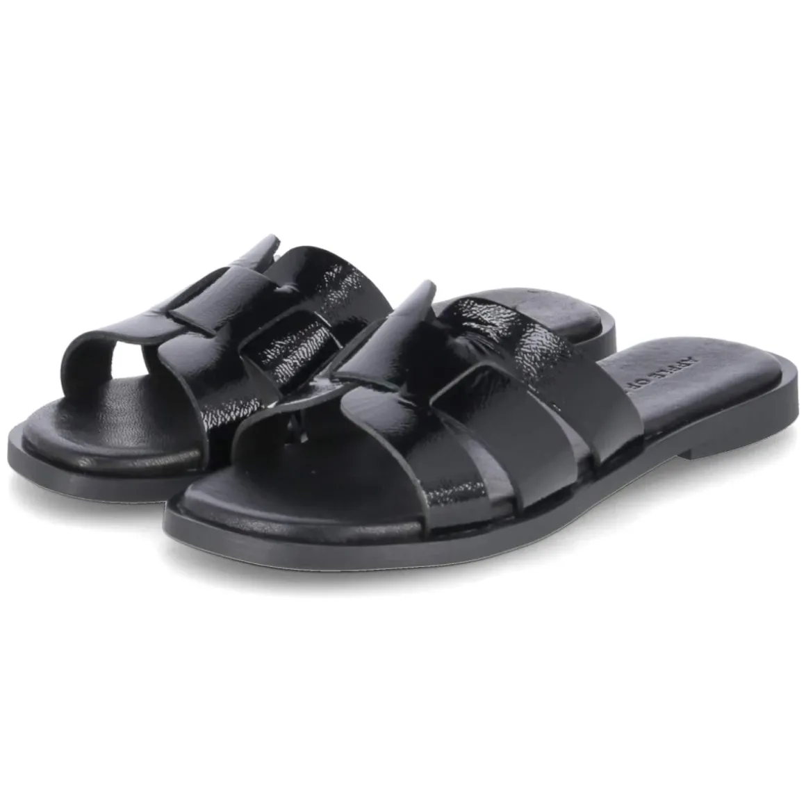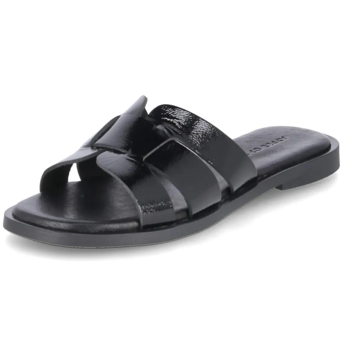 Die Pantoletten ALYCIA von Apple of Eden setzen auf klare Linien und eine elegante Lackoptik, die dem zeitlosen Schwarz zusätzlichen Glanz verleiht. Das offene Design lässt den Fuß luftig wirken, während das gepolsterte Fußbett gemeinsam mit der Lederdecksohle für spürbaren Komfort sorgt. Dank des unkomplizierten Schlupfeinstiegs wird stilvolle Lässigkeit zum täglichen Begleiter – ob im Büro, beim Stadtbummel oder zum Dinner. Die Form fällt normal aus und erleichtert die Größenauswahl. Durch das edle Lackleder wirken die Pantoletten feminin und hochwertig, zugleich lassen sie sich aufgrund der neutralen Farbgebung vielseitig zu bestehenden Garderoben kombinieren. Modetipp: Zum monochromen Ensemble mit weiter Anzughose und Satinbluse stylen und mit einer feinen Knöchelkette einen modernen Akzent setzen.