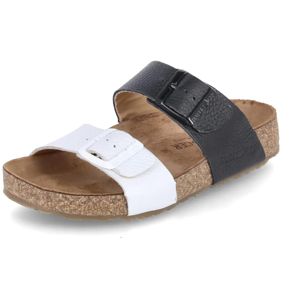 Pantoletten ANDREA von Haflinger verbinden reduzierte Eleganz mit funktionalem Komfort. Das hochwertige Glattleder in klassischem Weiß und die verstellbare Schnalle sorgen für eine präzise Anpassung, während langlebiges Echtleder jahrübergreifende Beständigkeit verspricht. Die offene Schuhspitze verleiht dem Design Leichtigkeit, die rutschhemmende Laufsohle Stabilität im Alltag. Ein gepolstertes, vorgeformtes Tieffußbett mit schwarz-weißen Akzenten unterstützt den Fuß angenehm und macht die Pantolette zum entspannten Begleiter für Büro, Stadtbummel oder Urlaub. Die Decksohle aus Leder schmeichelt der Haut, das Modell fällt normal aus und überzeugt mit moderner Optik ohne Überflüssiges. Modetipp: Für einen frischen, urbanen Look zu weißer Leinenhose, Streifenhemd und silberfarbenen Accessoires kombinieren – so entsteht ein ruhiger Monochrom-Stil mit subtilen Kontrasten.