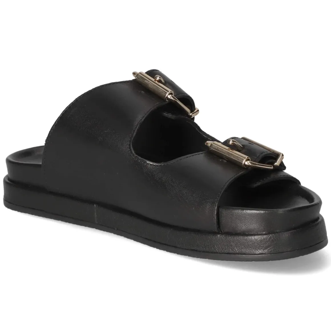 Die Pantoletten von Kaerlek verbinden zeitlose Eleganz mit hohem Tragekomfort. Langlebiges Echtleder in schwarzem Glattleder verleiht dem offenen Design eine edle Note, während die zwei goldfarbenen Schnallen einen stilvollen Akzent setzen und zugleich die Weite individuell regulieren. Das gepolsterte Fußbett und die lederne Decksohle sorgen für ein angenehmes Laufgefühl, unterstützt von einer flexiblen, rutschhemmenden Laufsohle für zuverlässigen Halt im Alltag. Der Schnitt fällt normal aus und macht die Pantoletten zur unkomplizierten Wahl für zahlreiche Anlässe. Ob für Büro, City oder Wochenendtrip, die guten Kombinationsmöglichkeiten reichen von minimalistischen Looks bis zu femininen Ensembles. Modetipp: Zu einer weiten Leinenhose und einem schwarzen Satin-Top entsteht ein moderner Monochrom-Look, der mit goldfarbenem Schmuck die Schnallen harmonisch aufgreift.
