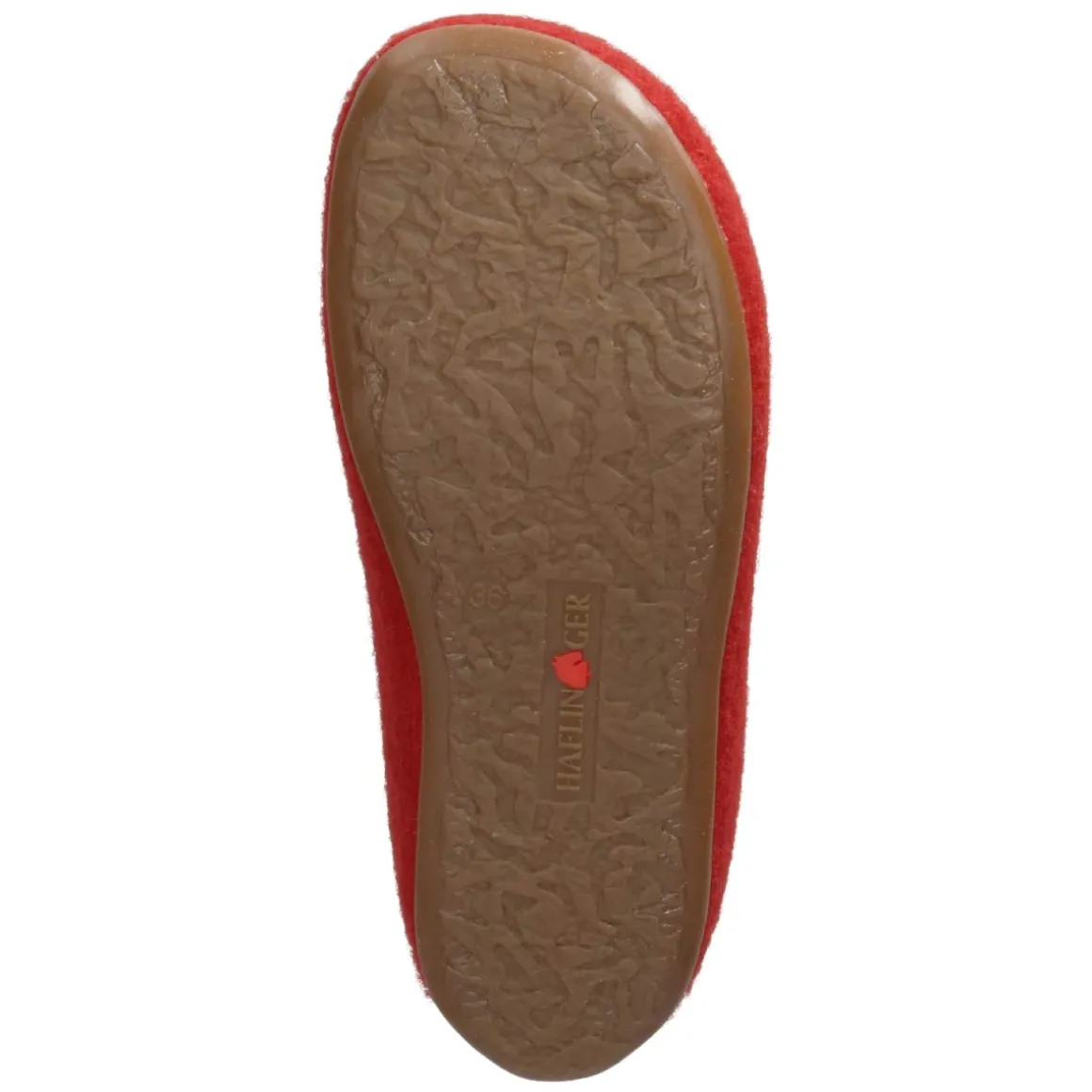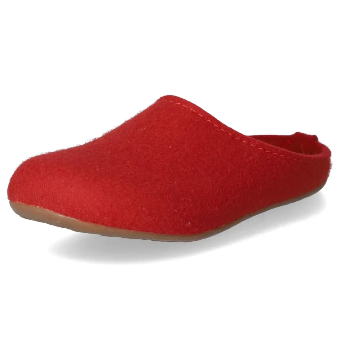 Die Pantoletten EVEREST FUNDUS von Haflinger kombinieren zeitloses Design mit spürbarer Bequemlichkeit. Der rote Textilbezug in markanter Filzoptik wirkt warm und wohnlich, während der griffige Stoff am Fuß Halt vermittelt. Durch den unkomplizierten Einstieg ohne Verschluss gelingt das Hineinschlüpfen im Alltag besonders schnell. Die runde Schuhspitze lässt den Zehen Raum, das leicht gepolsterte Fußbett unterstützt sanft und kann dank Wechselfußbett nach Bedarf ausgetauscht werden – ideal auch für eigene Einlagen. Eine flexible, griffige Laufsohle sorgt auf Parkett wie auf kurzen Wegen nach draußen für zuverlässige Traktion. Das Modell fällt normal aus und richtet sich an erwachsene Damen, die Wert auf Komfort und Schlichtheit legen. Modetipp: Zum roten Ton passen naturfarbene Strickteile und eine lässige Jeans, dazu ein schmaler Gürtel in Cognac für einen harmonischen, entspannten Look.