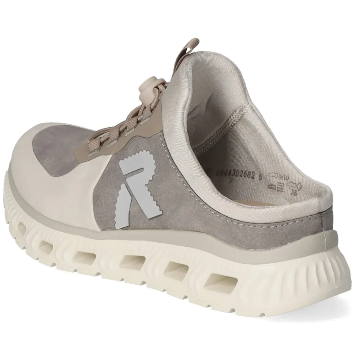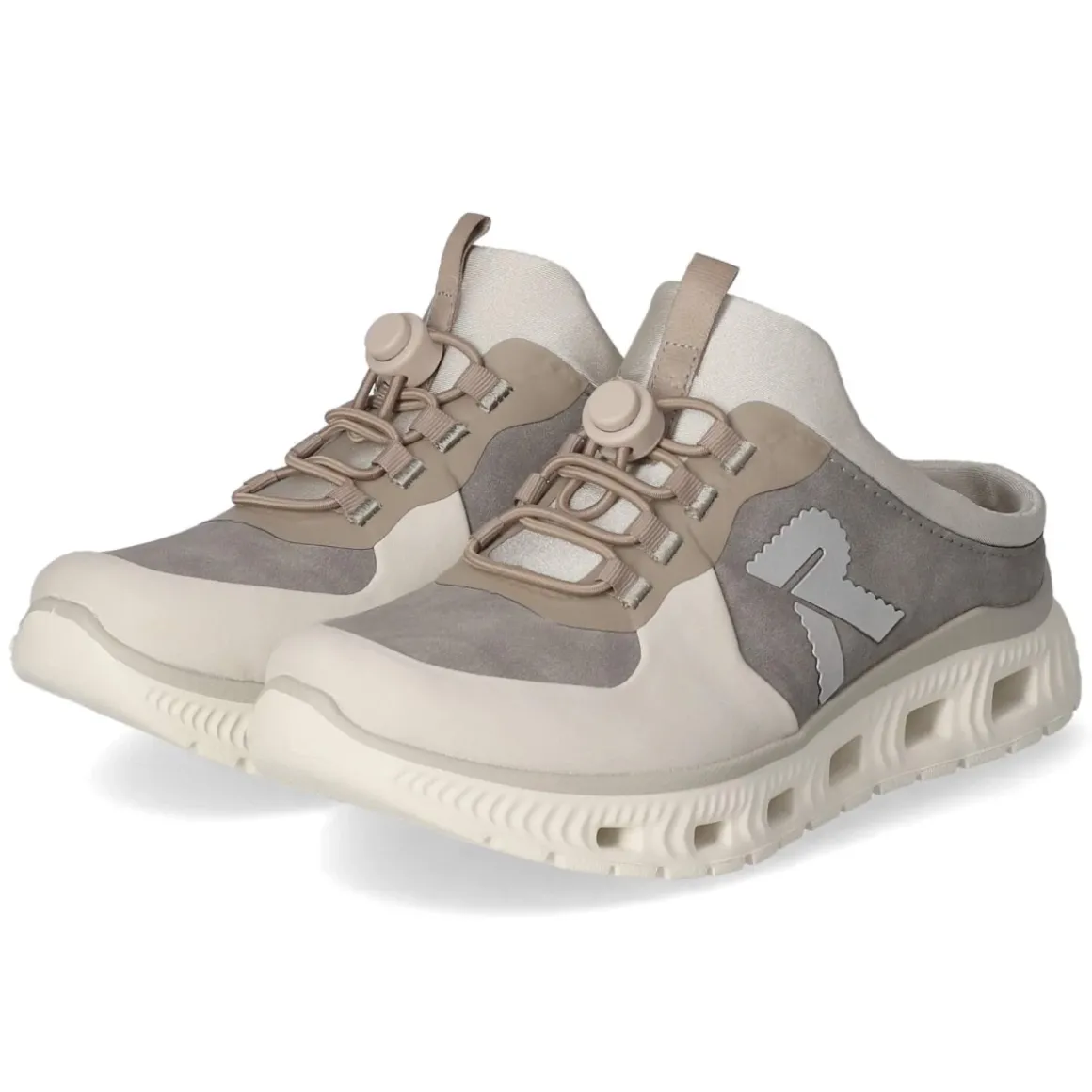 Die grauen Pantoletten von Rieker verbinden modernes Design mit durchdachter Funktion. Das Obermaterial aus Textil und Synthetik wirkt zeitgemäß und pflegeleicht, die modern designte Synthetik setzt dezente Akzente. Für einen unkomplizierten Einstieg sorgt ein Elastikband mit Schnellverschluss, das den Sitz bequem stabilisiert. Die beste Memory-Foam-Fußbettung schmiegt sich weich an und federt Schritte souverän ab, während die textile Decksohle angenehm am Fuß liegt. Runde Schuhspitze und verstärkter Zehenbereich erhöhen den Komfort im Alltag. Eine flexible, rutschhemmende Laufsohle bietet Trittsicherheit auf unterschiedlichen Untergründen, reflektierende Details verbessern die Sichtbarkeit bei wenig Licht. Der Schnitt fällt normal aus und macht das Finden der passenden Größe leicht. Modetipp: Besonders stimmig zu Cropped-Jeans in Hellblau und einem melierten Stricktop oder als Ton-in-Ton-Partner zu grauen Leinenhosen.