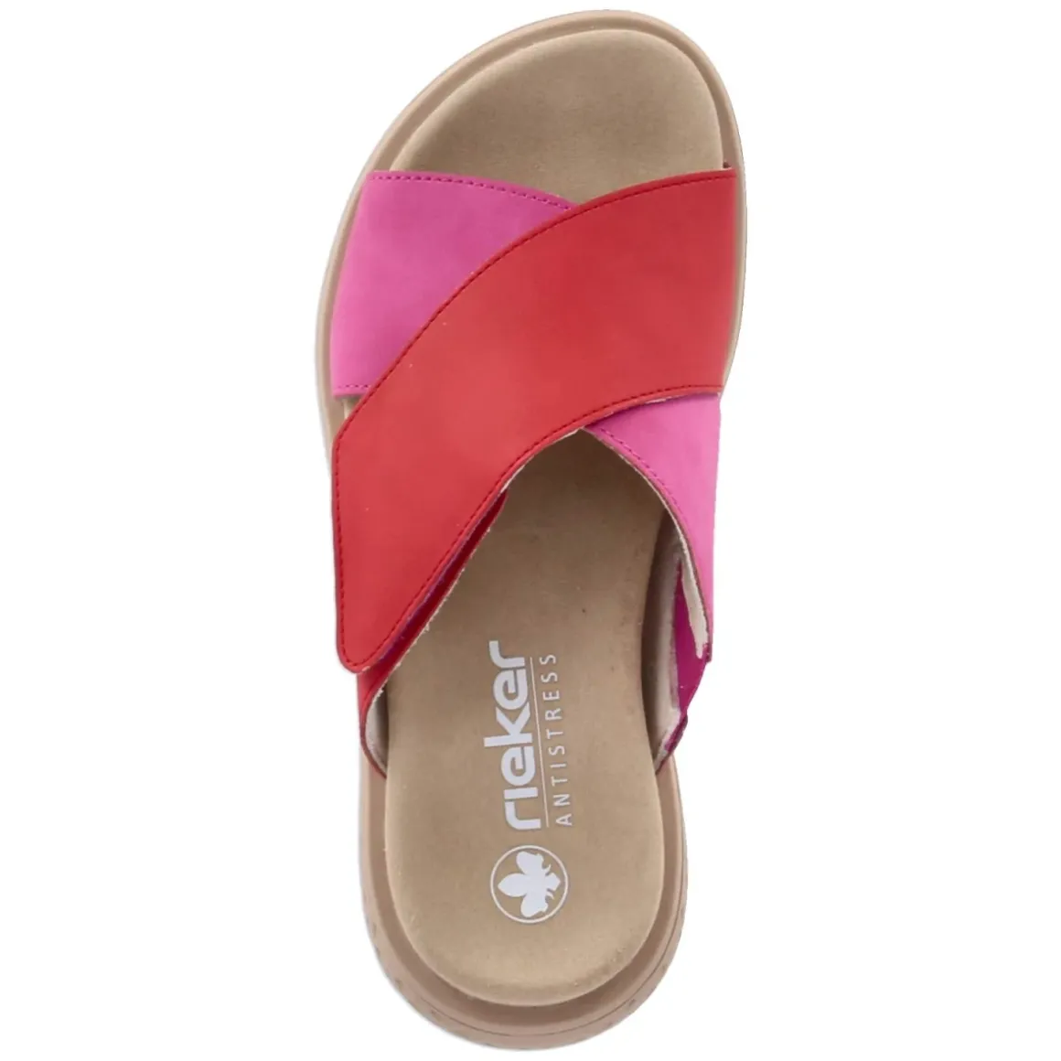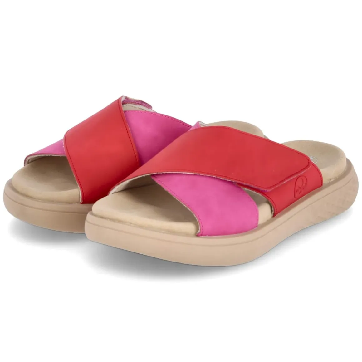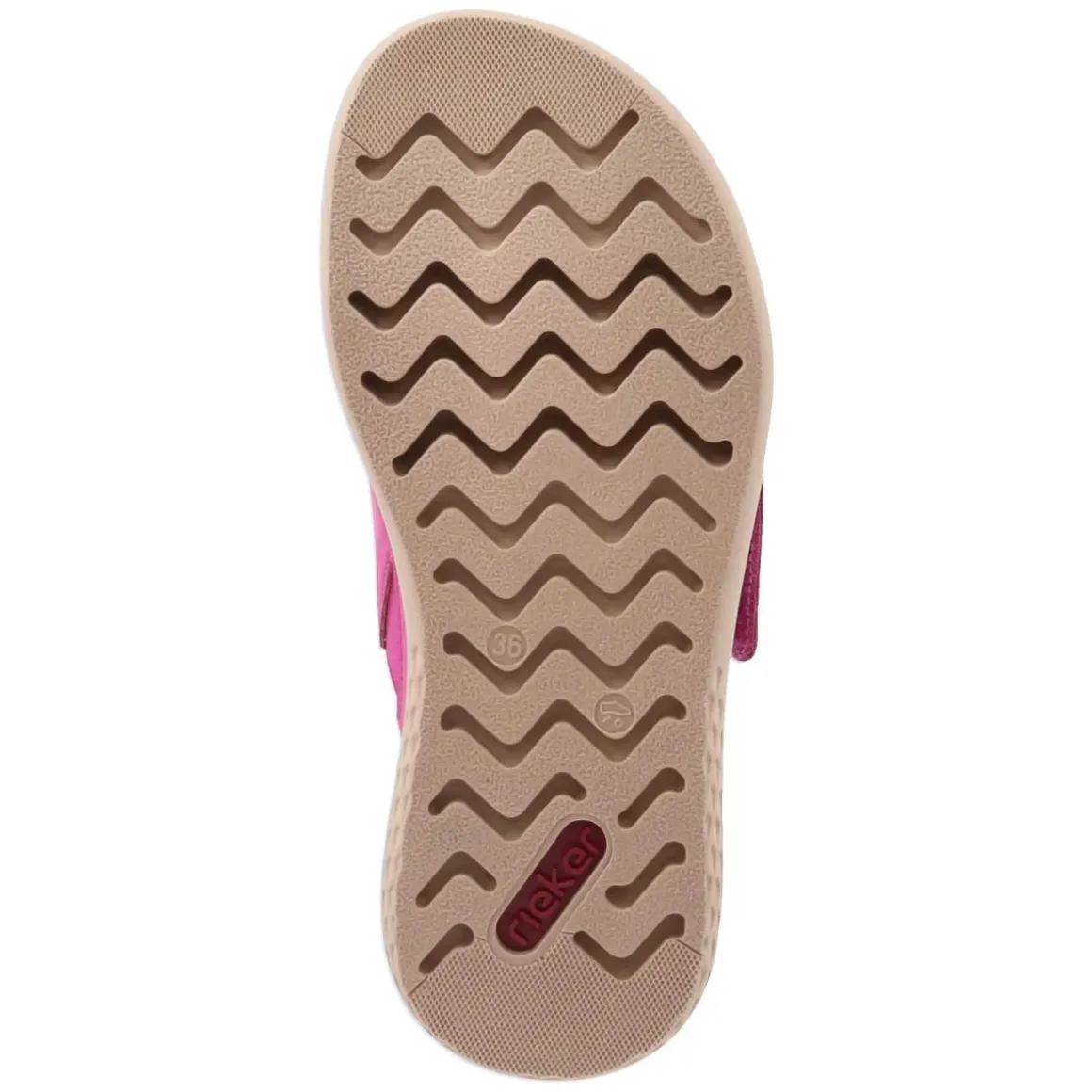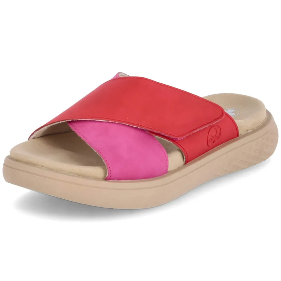 Diese Rieker Pantoletten in lebendigem Pink verbinden Komfort und unkomplizierte Pflege mit sommerlicher Leichtigkeit. Zwei gekreuzte, breite Riemen aus strapazierfähigem Synthetik umschließen den Fuß sicher, während der bequeme Klettverschluss eine fein justierbare Passform ermöglicht. Das vorgeformte, gepolsterte Fußbett mit textiler Decksohle verwöhnt bei jedem Schritt, die rutschhemmende Laufsohle sorgt für verlässlichen Halt auf unterschiedlichen Untergründen. Dank offener Schuhspitze bleibt es luftig, ideal für warme Tage. Der Passformhinweis fällt normal aus erleichtert die Größenwahl und macht die Sandale zum unkomplizierten Begleiter im Alltag und auf Reisen. Modetipp: Zu Leinen-Culotte und gestreiftem Tanktop entsteht ein frischer City-Look; goldfarbene Kreolen und eine Korbtasche setzen dazu edle Akzente.