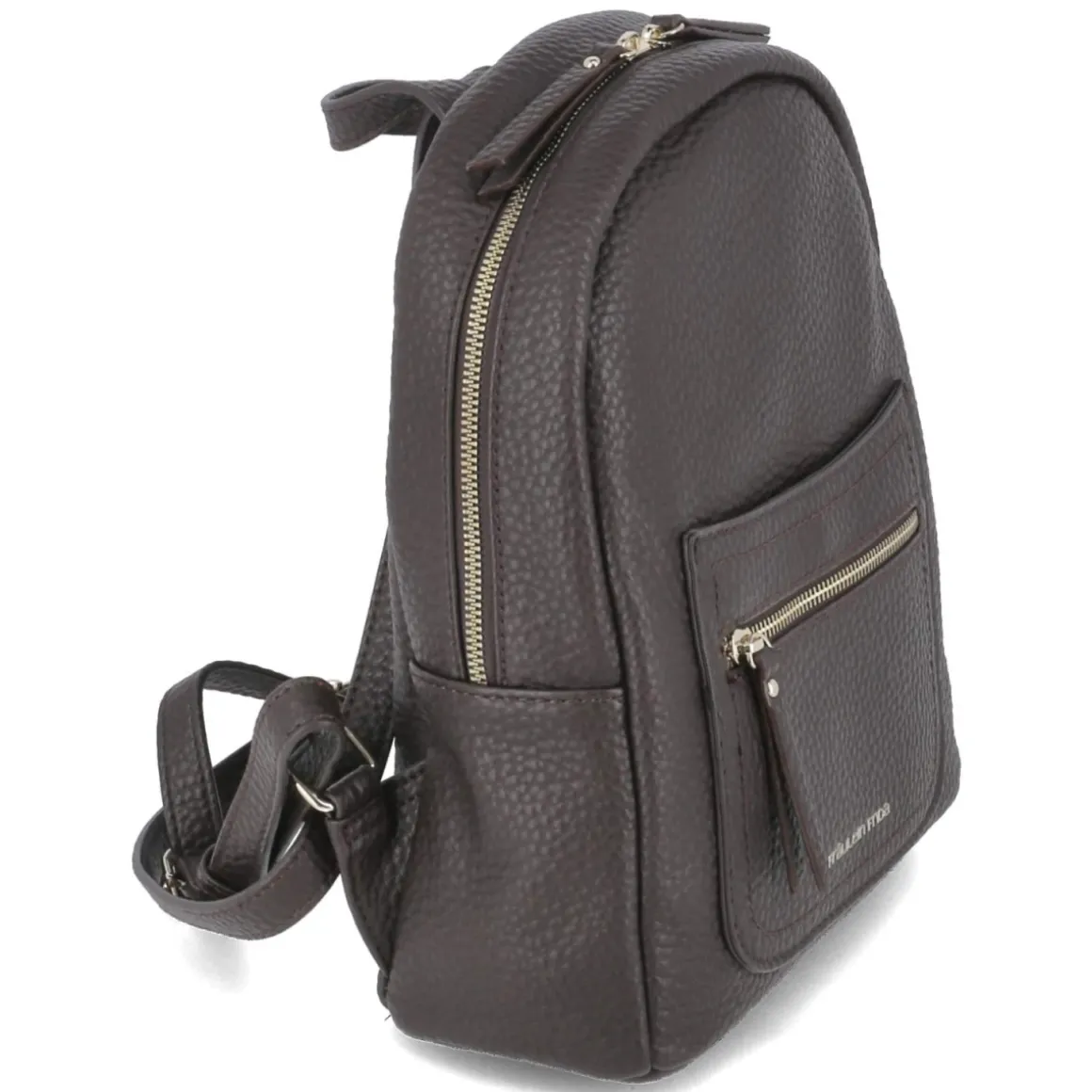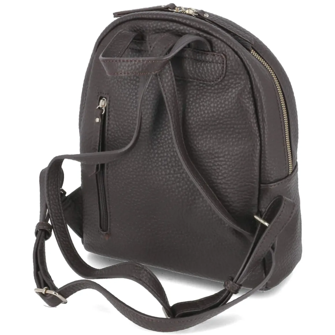 Dieser Damenrucksack in sattem Braun verbindet stilvolle Zurückhaltung mit cleverer Aufteilung. Dunkelbraune Partien und Metallelemente in goldener Optik setzen elegante Akzente, während die kompakten Maße von ca. 30 x 24 x 11 cm bei einem Volumen von ca. 7 Litern genug Platz für Alltags-Essentials bieten. Verstellbare Tragegurte bis ca. 80 cm und ein stabiler Henkel sorgen für komfortable Tragemöglichkeiten, der verstärkte Boden bewahrt die Form. Zwei Fronttaschen und ein praktisches Rückenfach halten Wichtiges schnell griffbereit. Das Reißverschlusshauptfach schützt den Inhalt, innen strukturieren ein Steckfach und ein zusätzliches Reißverschlussfach die persönlichen Dinge. Modetipp: Zu camelfarbenem Mantel, dunkler Denim und goldenen Accessoires kombinieren, um die warmen Töne und die Hardware harmonisch aufzugreifen.