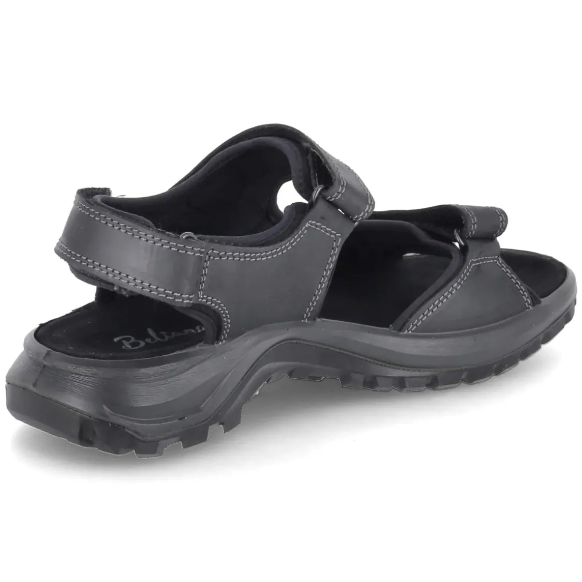 Beliano Sandalen aus schwarzem Glattleder vereinen robuste Langlebigkeit mit sommerlicher Leichtigkeit. Das langlebige Echtleder und die offene Schuhspitze sorgen für angenehmes Klima, während die lederne Decksohle zusammen mit dem gepolsterten Fußbett sanften Auftritt und dauerhaften Komfort bietet. Drei praktische Klettverschlüsse erlauben eine millimetergenaue Anpassung über Spann, Rist und Ferse; so sitzt der Schuh zuverlässig, fällt zugleich normal aus und bleibt schnell an- und auszuziehen. Ein angenehmes Textilfutter mit neoprenähnlicher Haptik schmiegt sich weich an und verhindert Druckstellen. Ziernähte setzen dezente Akzente, die flexible Profilsohle gibt Halt auf Stadtpflaster und Promenade. Ideal für Erwachsene, die Wert auf unkomplizierte Funktion legen. Modetipp: Zu schwarzen Beliano Sandalen harmonieren Leinen-Shorts und ein helles Polo, alternativ eine gekrempelte Chino und ein luftiges Hemd.