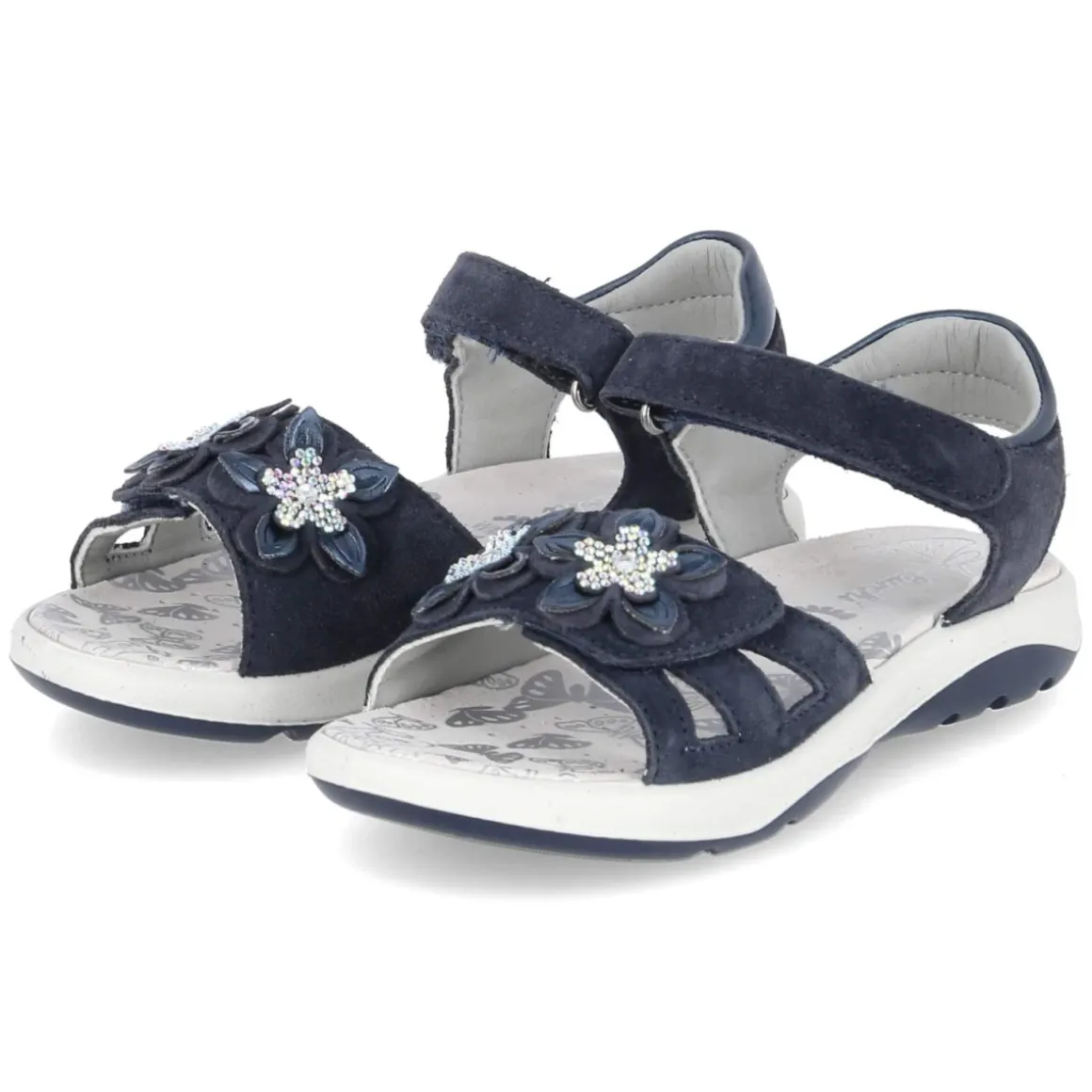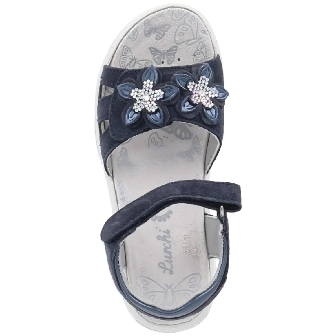 Die Sandalen FORINA von Lurchi setzen auf strapazierfähiges Echtleder in feinem Rauleder-Finish und zeigen sich in frischem Blau. Die offene Schuhspitze und die leicht gepolsterte Lederdecksohle sorgen an warmen Tagen für ein angenehm luftiges Tragegefühl, während der weich gepolsterte Fersenriemen zusätzlichen Komfort gibt. Zwei praktische Klettverschlussriemen erlauben eine passgenaue Weitenregulierung; der vordere Riemen glänzt mit kleinen Blumen und Glitzersteinen und macht jeden Schritt zum Blickfang. Die flexible, rutschhemmende Laufsohle bietet guten Halt auf verschiedenen Untergründen – ideal für aktive Kinderfüße. Das Modell fällt normal aus und überzeugt mit langlebigen Materialien, die viele Abenteuer mitmachen. Modetipp: Zu Jeansshorts und einem leichten Sommerkleidchen in Pastelltönen kommt das Blau besonders schön zur Geltung.