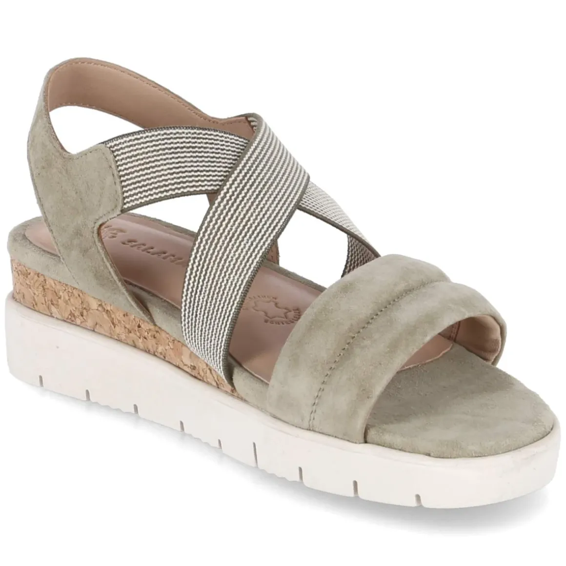Die grünen Damen-Sandalen von Salamander vereinen zeitlose Eleganz mit entspanntem Komfort. Weiches Rauleder und eine runde Schuhspitze schmeicheln dem Fuß, während gekreuzte Elastikriemen über dem Spann für sicheren Halt sorgen und den Einstieg besonders unkompliziert machen. Ein gepolsterter vorderer Riemen mit feiner Quersteppung schützt empfindliche Partien, die hautfreundliche, gepolsterte Lederdecksohle unterstützt angenehm bei jedem Schritt. Langlebiges Echtleder und eine rutschhemmende Laufsohle mit leichtem Keil bringen Stabilität und ein dezentes Plus an Höhe. Die Passform fällt normal aus und eignet sich somit für den täglichen Einsatz vom Stadtbummel bis zur Gartenparty. Modetipp: Zu einem cremefarbenen Leinenkleid und filigranem Goldschmuck entsteht ein sommerlicher Look, der die grüne Nuance der Sandalen elegant hervorhebt.