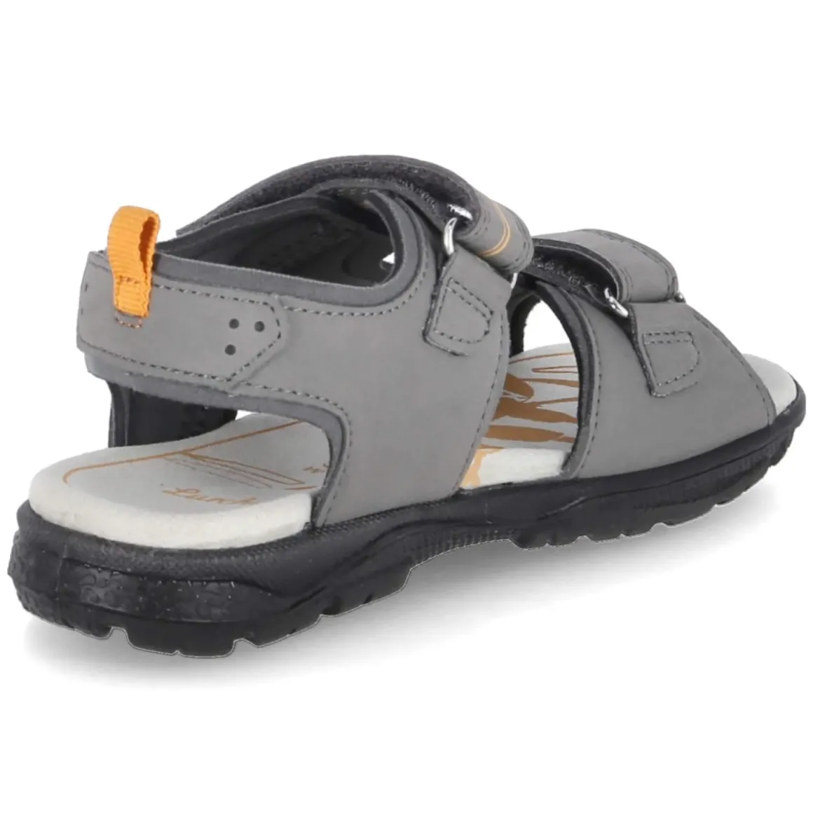 Die Sandalen KINJA von Lurchi bringen mit grauem Obermaterial aus Textil und Synthetik und einem orangen Ninja-Print Schwung in sommerliche Kinder-Outfits. Der moderne Material-Mix liegt leicht am Fuß, das weiche Lining und ein dämpfendes Fußbett steigern den Tragekomfort vom ersten Schritt an. Zwei praktische Klettverschlüsse und eine Anziehlasche erleichtern das Handling, während die offene Schuhspitze luftige Frische bietet. Die sehr flexible Profilsohle sorgt für gute Trittsicherheit auf Spielplatz, Schulweg und im Urlaub. Dank Weite W haben auch kräftigere Füße ausreichend Platz, gleichzeitig fällt das Modell insgesamt normal aus. Die bedruckte Optik bleibt alltagstauglich und macht Lust auf Bewegung. Modetipp: Zu Bermudas in Grau oder Schwarz und einem T‑Shirt mit orangenen Akzenten entsteht ein harmonischer Look; leichte Sportsocken oder barfuß funktionieren gleichermaßen.
