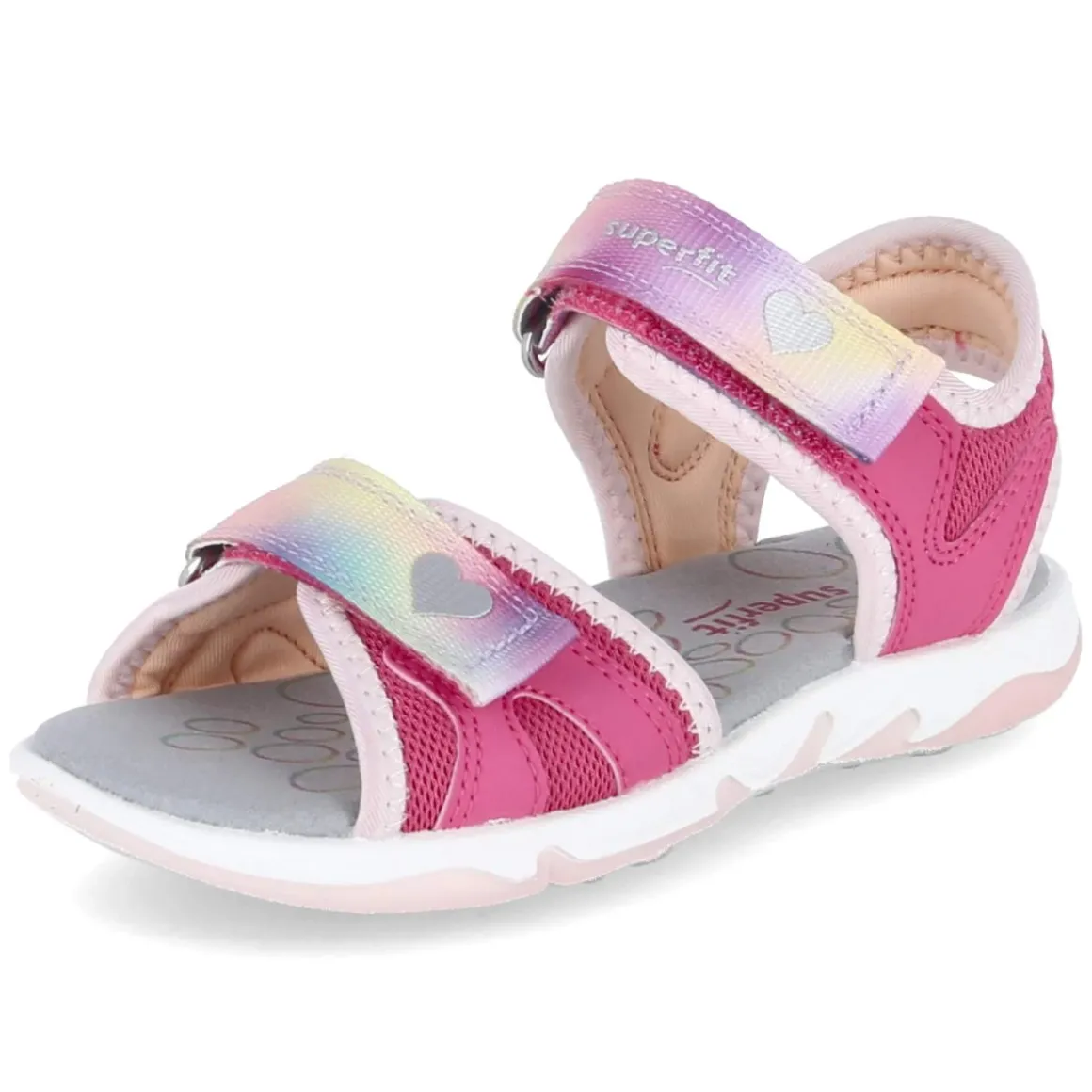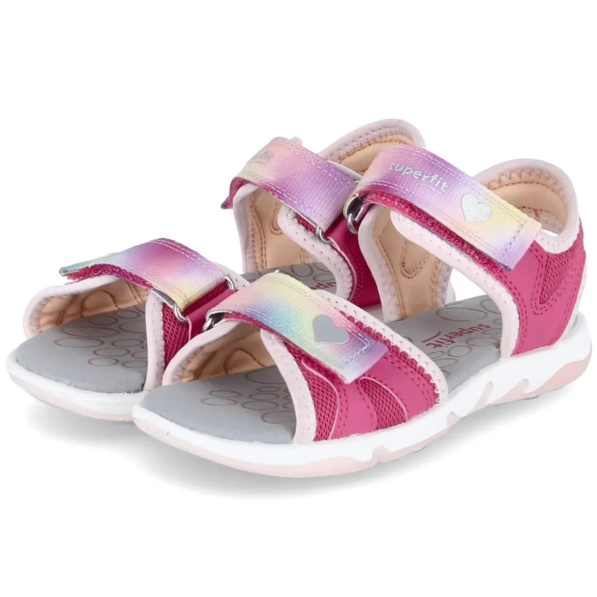 Diese Superfit Sandalen in Pink bringen Farbe in jeden Sommertag. Das moderne Zusammenspiel aus Textil und Synthetik sorgt für einen leichten, robusten Material-Mix, während die weiche Textildecksohle kleinen Füßen angenehmen Komfort schenkt. Zwei Klettverschlüsse mit Regenbogenfarbverlauf ermöglichen einen schnellen Einstieg und lassen sich passgenau regulieren. Die offene Schuhspitze und die flexible, griffige Laufsohle geben Luftigkeit und sicheren Halt, ob auf dem Spielplatz oder beim Stadtbummel. In Weite M konstruiert und mit Größenhinweis „fällt normal aus“ gelingt die Auswahl unkompliziert. Das Design mit Farbverlauf setzt fröhliche Akzente und begleitet vielfältige Sommer-Outfits. Modetipp: Am schönsten zu Denim-Shorts, leichten Sommerkleidern oder Leggings in Pastelltönen, dazu farblich abgestimmte Socken für den Trend-Look.