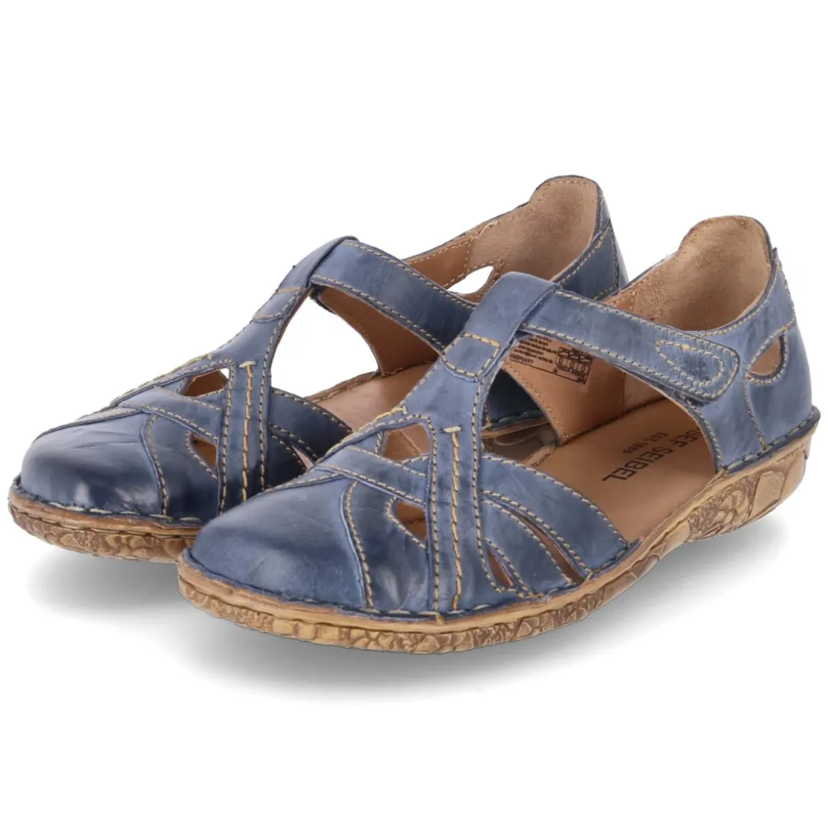 Die Sandalen ROSALIE 29 von Josef Seibel vereinen feminine Leichtigkeit mit alltagstauglichem Komfort. Das hochwertige Glattleder im klaren Blau präsentiert sich langlebig und trägt mit markanten Nähten eine handwerkliche Note. Der geschlossene Zehenbereich mit feinem Flechtelement verleiht Schutz und eine dekorative Struktur, während der T-Steg mit bequemen Klettverschlussriemen ein schnelles An- und Ausziehen ermöglicht. Eine hautfreundliche, gepolsterte Lederdecksohle umschmeichelt den Fuß und sorgt zusammen mit dem geringen Gewicht und der flexiblen Laufsohle für entspanntes Gehen. Die runde Schuhspitze bietet angenehmen Platz, der Größenhinweis fällt normal aus und macht die Wahl unkompliziert. Ein vielseitiger Begleiter von Stadtbummel bis Sommerabend. Modetipp: Zum Blau passen weiße Jeans, eine leichte Leinenbluse und Accessoires in Silber oder beige für einen frischen, maritimen Look.