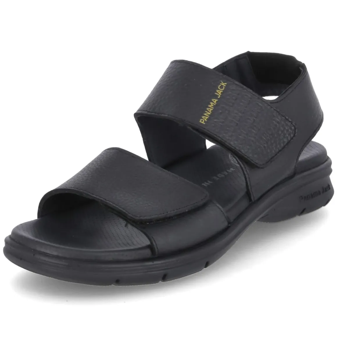 Panama Jack präsentiert mit den Sandalen RUSSEL C1 einen verlässlichen Begleiter für warme Tage. Das Obermaterial aus Glattleder überzeugt durch langlebiges Echtleder, während ein hautfreundliches Lederfutter für angenehmes Fußklima sorgt. Zwei breite Riemen mit praktischen Klettverschlüssen erlauben schnelle Anpassungen, ergänzt durch einen Riemen mit Fersenpolster für zusätzlichen Halt. Die leicht vorgeformte, weiche Lederdecksohle unterstützt den Fuß komfortabel, die flexible Laufsohle gewährleistet ein natürliches Abrollen. Offene Schuhspitze und die markentypisch solide Verarbeitung unterstreichen den funktionalen Anspruch. In zeitlosem Schwarz und mit normal ausfallender Passform eignet sich dieses Herrenmodell für Alltag und Reise gleichermaßen. Modetipp: Mit Leinenhemd und schmalen Chino-Shorts wirkt der Look lässig und zugleich gepflegt.