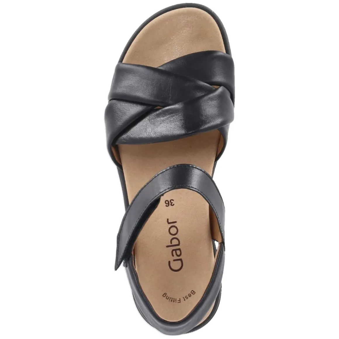 Die Gabor Sandalen vereinen zeitloses Design und Komfort in hochwertigem, langlebigem Echtleder. Schwarzes Glattleder mit verflochtenen Riemen vorne verleiht dem offenen Schnitt eine feminine Note, während der bequeme Klettverschluss sicheren Halt und schnelle Anpassung ermöglicht. Eine textilbezogene, vorgeformte und weich gepolsterte Decksohle schmiegt sich dem Fuß an und unterstützt bei jedem Schritt. Der leicht wattierte Fersenriemen reduziert Druckstellen, die flexible, rutschfeste Profilsohle sorgt für Stabilität auf verschiedenen Untergründen. Der Passformhinweis fällt normal aus und macht die Wahl unkompliziert. Modetipp: Zu einem luftigen Leinenkleid und filigranem Goldschmuck entsteht ein eleganter Sommer-Look mit subtilem Statement.