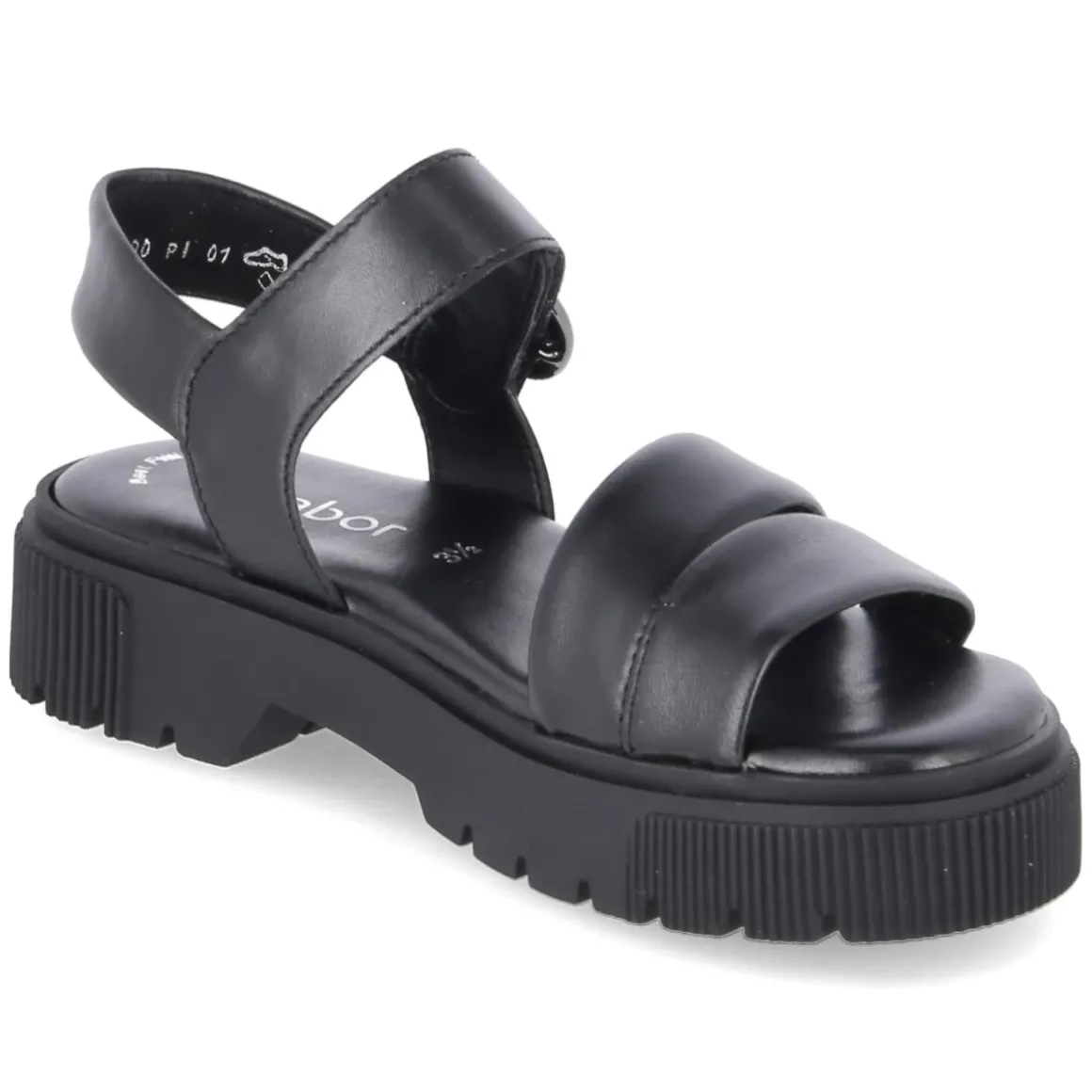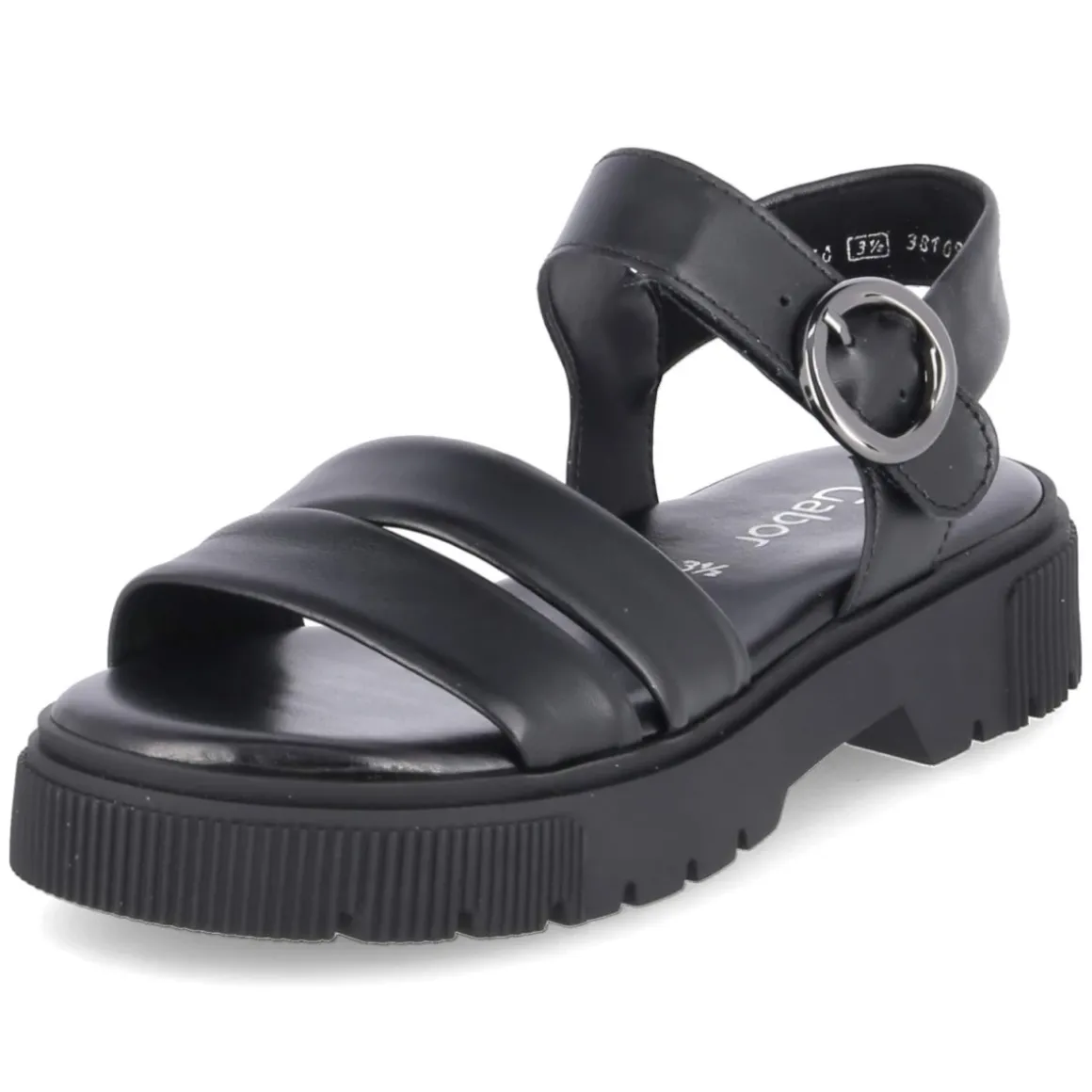 Die schwarze Sandale von Gabor vereint klare Linien mit durchdachtem Tragekomfort. Weiches Glattleder legt sich geschmeidig an, während die lederne Decksohle ein angenehm natürliches Fußklima unterstützt. Der offene Schnitt bringt Luftigkeit in sommerliche Outfits, das gepolsterte Fußbett federt jeden Schritt sanft ab. Ein bequemer Klettverschluss ermöglicht präzises Anpassen, ohne Zeit zu verlieren, und die rutschfeste Profilsohle mit Bumpern sorgt für verlässlichen Halt auf glatten Wegen wie Kopfsteinpflaster. Aus langlebigem Echtleder gefertigt und in normaler Passform konzipiert, trifft das Modell die gewohnte Größe. Modetipp: Zur cropped Leinen-Culotte und einem lockeren Stricktop entsteht ein moderner City-Look; ein schwarzer Ledergürtel greift die Tonalität auf und rundet das Ensemble harmonisch ab.