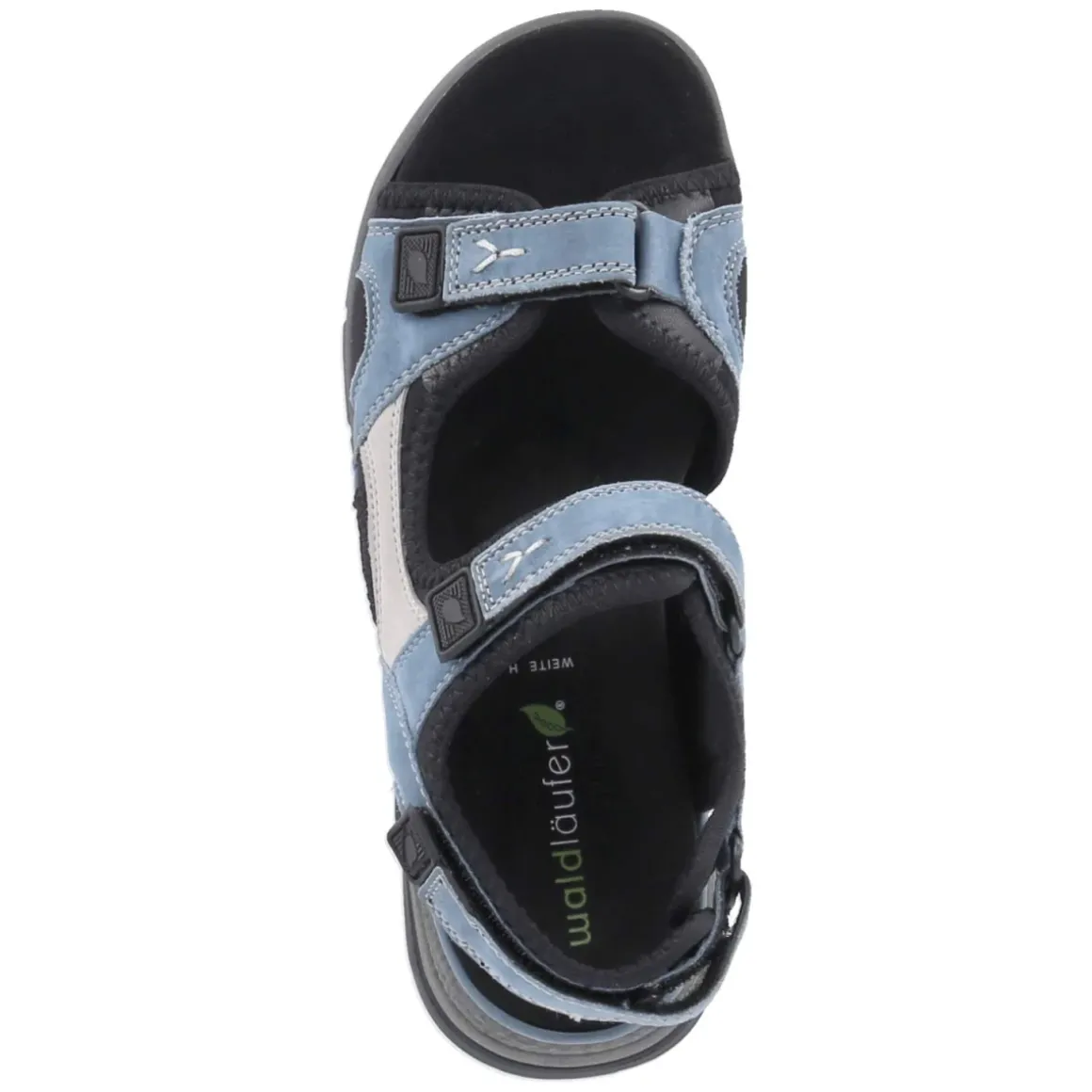 Waldläufer präsentiert mit dem Modell Sandalen SORA eine Sommerschuh-Ikone, die Komfort und dezente Eleganz vereint. Das langlebige Echtleder des blauen Obermaterials schmiegt sich weich an, während leichtes Futter und eine Decksohle aus Textil für ein angenehmes Fußklima sorgen. Drei praktische Klettriemen samt seitlichem Steg erlauben passgenaue Regulierung; die offene Schuhspitze verleiht Luftigkeit. Das komfortable Wechselfußbett lässt sich bei Bedarf gegen eigene Einlagen tauschen. Unterwegs überzeugt die flexible, rutschhemmende Profillaufsohle mit verlässlichem Grip auf verschiedenem Untergrund. Dekorative Nähte setzen feine Akzente, der Größenhinweis fällt normal aus und erleichtert die Wahl. Ein zeitloser Begleiter für Alltag, Reise und City. Modetipp: Zur blauen Sandale harmonieren naturfarbene Leinenhosen und ein weißes Hemdblusentop; dazu Bast-Shopper und filigraner Silberschmuck für eine leichte Sommernote.