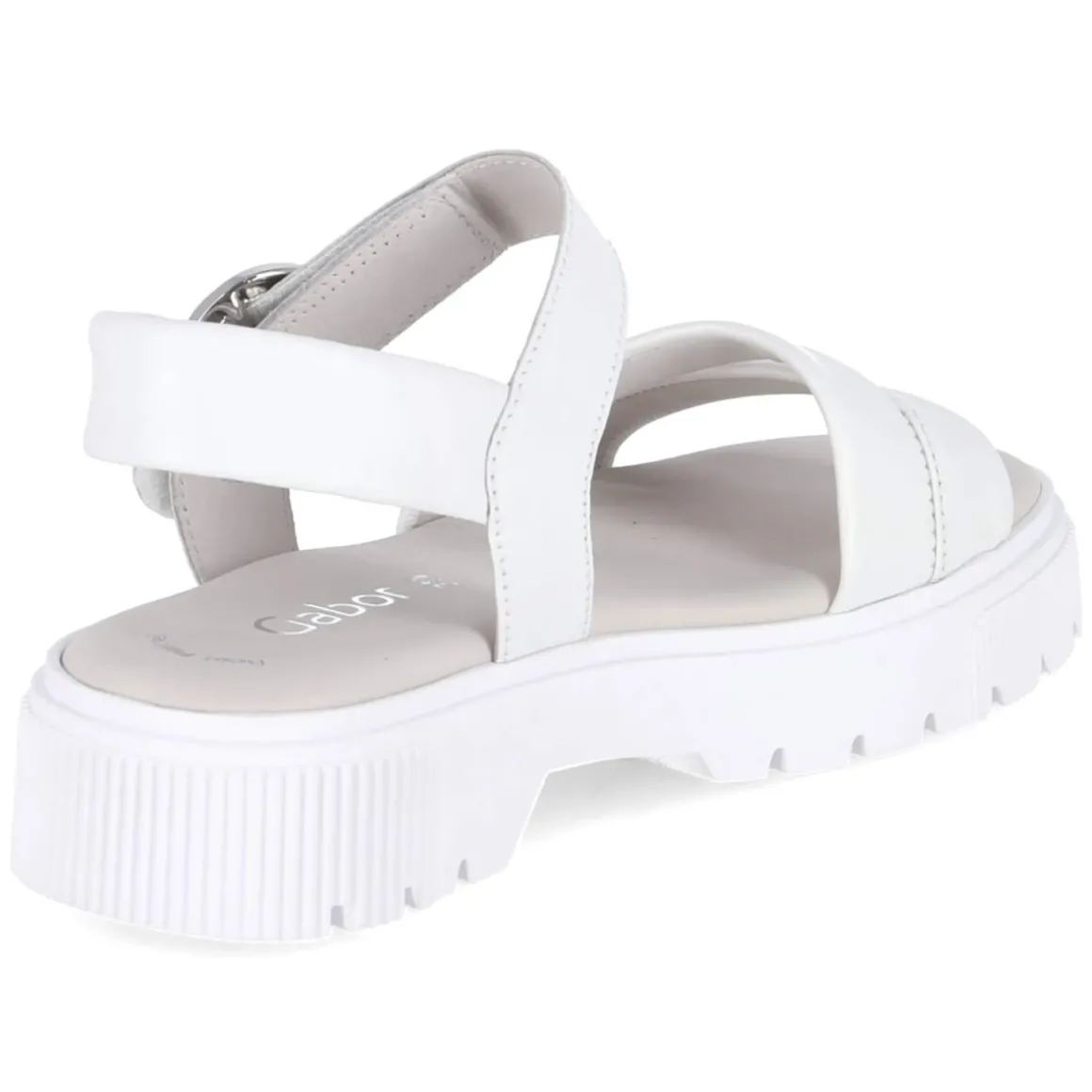 Die weißen Gabor Sandalen verbinden zeitlose Eleganz mit durchdachtem Komfort. Glattes Echtleder umschmeichelt den Fuß, die offene Schuhspitze setzt sommerliche Leichtigkeit in Szene. Ein 4 cm hoher Blockabsatz sorgt für angenehme Höhe und zuverlässige Stabilität, während die rutschfeste Profilsohle mit Bumpern sicheren Halt vermittelt. Der bequeme Klettverschluss mit Zierschnalle erleichtert das An- und Ausziehen und ermöglicht individuelle Anpassung. Für lang anhaltendes Wohlgefühl steht die lederne Decksohle mit gepolstertem Fußbett. Die Passform fällt normal aus und begleitet durch Alltag und Anlass gleichermaßen. Modetipp: Zu einem monochromen Look in Offwhite und beigen Leinenstoffen wirkt das strahlende Weiß besonders edel; eine Basttasche greift die sommerliche Note auf.