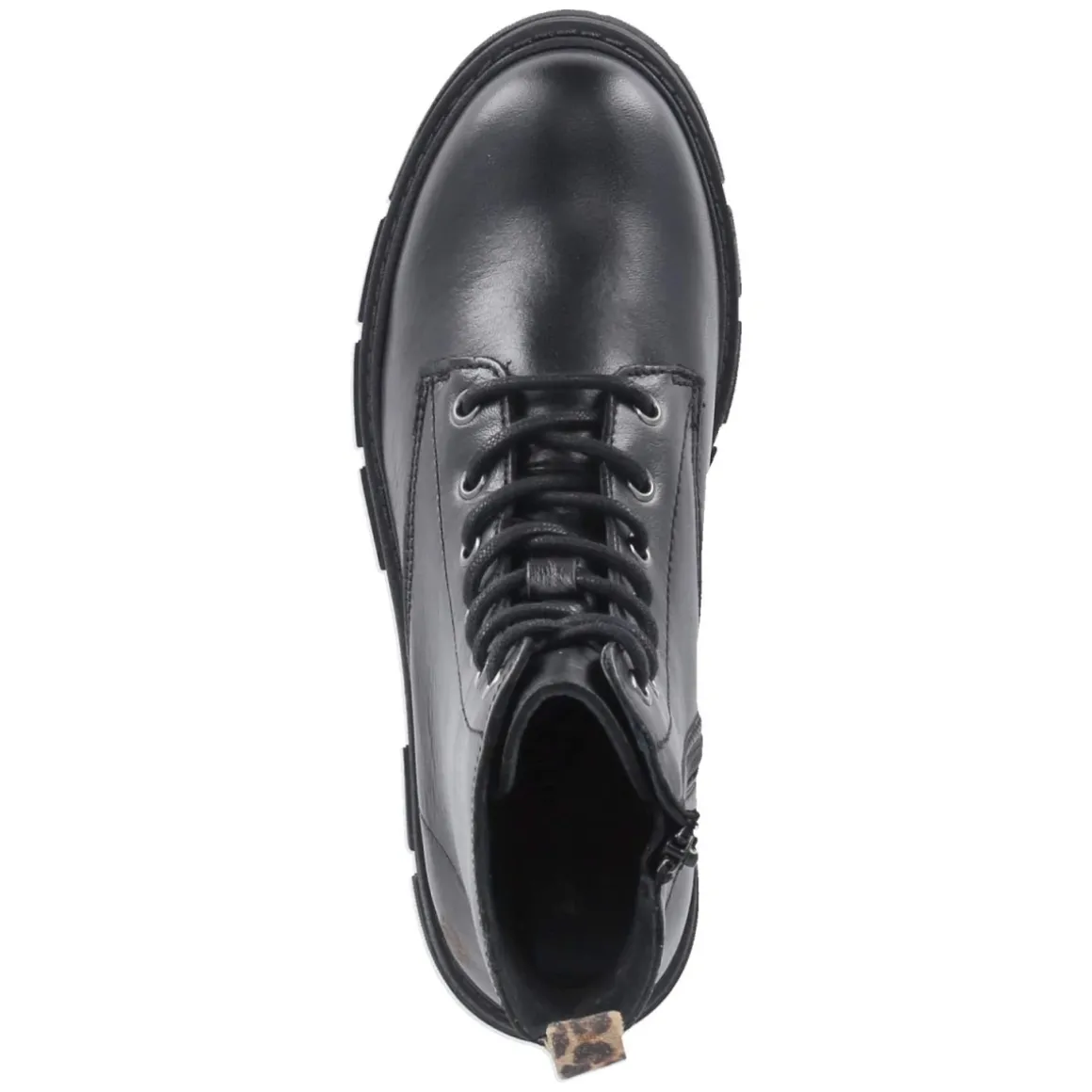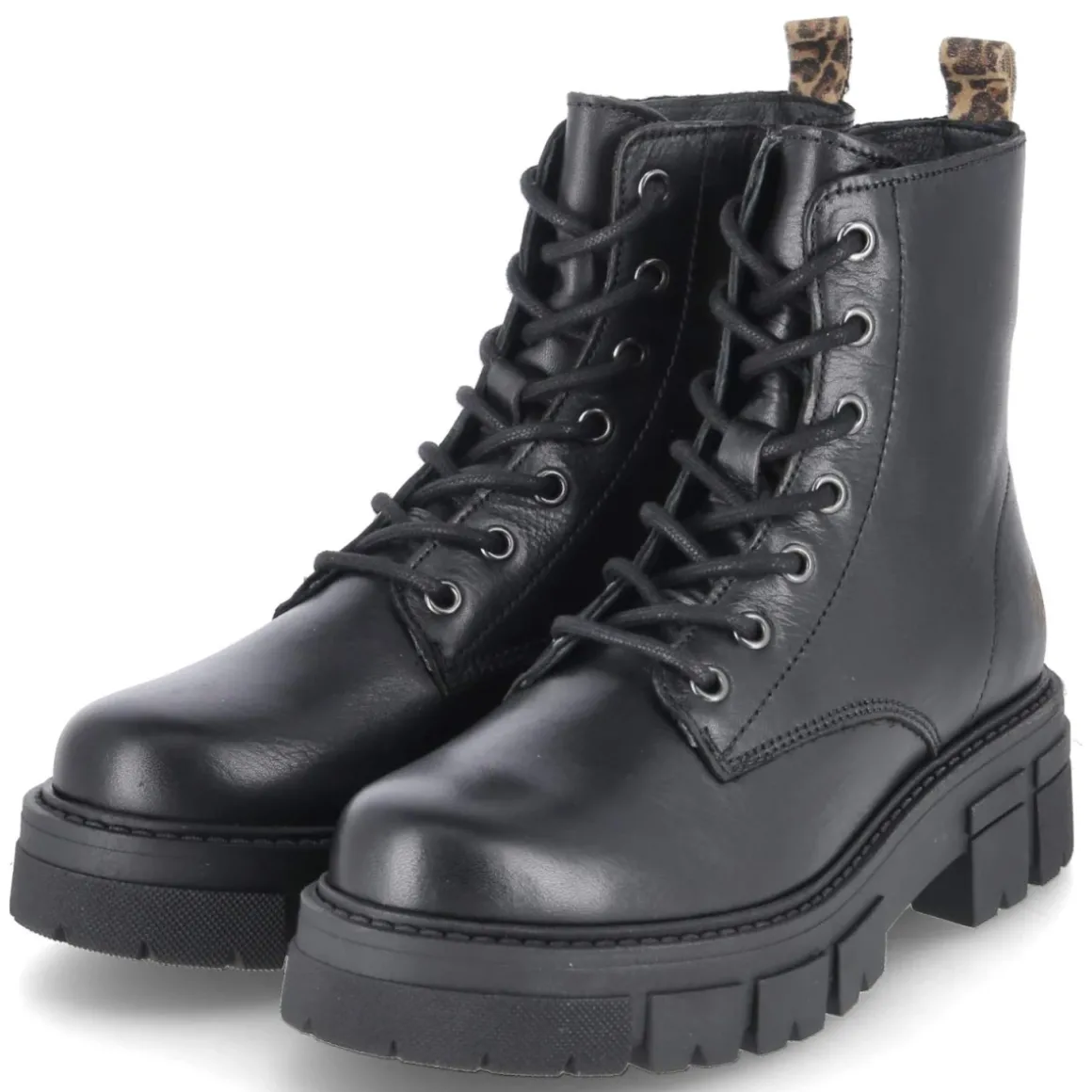 Apple of Eden präsentiert mit den Schnürboots CASTLE 1.1 einen urbanen Klassiker in schwarzem Glattleder. Die moderne Optik lebt von der klaren Linienführung, der runden Kappe und dem Mix aus Schnürung und seitlichem Reißverschluss, der das Anziehen erleichtert und die Passform justierbar hält. Langlebiges Echtleder und eine lederne Decksohle umschließen den Fuß, während das gepolsterte Fußbett den Alltag komfortabel begleitet. Der 5‑cm‑Blockabsatz harmoniert mit der robusten, rutschhemmenden Profilsohle samt ca. 3‑cm‑Plateau und sorgt für standfesten Lift. Eine verstärkte Ferse mit Zuglasche im Animal‑Print (Leopard) setzt einen dezenten Eyecatcher. Normal ausfallend und für erwachsene Damen konzipiert, wird der Boot zum vielseitigen Begleiter zwischen Büro und Freizeit. Modetipp: mit Cropped‑Denim und Wollmantel kombinieren, oder als Kontrast zu Midikleid und blickdichter Strumpfhose tragen.