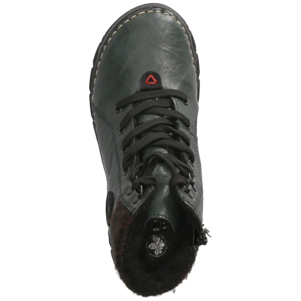 Dieser Rieker Schnürboot in frischem Grün verbindet Komfort und Stil auf zeitgemäße Weise. Das Obermaterial aus modern designter Synthetik erhält durch den Schaftrand in Strickoptik und die weiße, rustikale Ziernaht am Sohlenrand eine ausdrucksstarke Note. Warmfutter und gepolstertes Fußbett sorgen für behagliche Wärme und ein weiches Auftreten, die textile Decksohle unterstützt atmungsaktiven Tragekomfort. Dank Schnürsenkeln und zusätzlichem Reißverschluss gelingt der Einstieg mühelos, während die rund geformte Spitze und die verstärkte Ferse den Fuß angenehm führen. Markendetails runden das Gesamtbild ab, die flexible, rutschfeste Laufsohle bietet verlässlichen Halt auf wechselnden Untergründen. Der Größenhinweis fällt normal aus und macht die Wahl unkompliziert. Modetipp: Mit Strickkleid, blickdichter Strumpfhose und Wollmantel entsteht ein urban-femininer Look mit spannender Materialmischung.