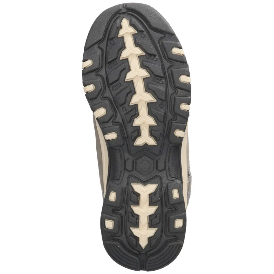 Die Schnürstiefeletten von Jane Klain liefern eine gelungene Mischung aus Stil und Funktion. Der robuste Textil-Synthetik-Mix mit rund zulaufender Spitze wirkt modern und angenehm unaufgeregt in Grau. Dank TEX-Ausstattung ist das Obermaterial wasserabweisend, während das leichte Futter an kühlen Tagen wohlige Wärme spendet. Schnürsenkel sorgen für individuellen Halt, der seitliche Reißverschluss und die Anziehhilfe ermöglichen einen schnellen Einstieg. Ein verstärkter Zehen- und Fersenbereich erhöht die Langlebigkeit, die flexible, rutschfeste Profilsohle gibt Sicherheit auf nassem Untergrund. Die Decksohle aus Synthetik ist als Wechselfußbett ausgeführt und unterstützt den Tragekomfort. Der Schaftrand in Filzoptik setzt einen weichen, winterlichen Akzent und unterstreicht die vielseitige Kombinierbarkeit. Modetipp: Mit Strickkleid und Wollmantel entsteht ein stimmiger City-Look, Ton-in-Ton-Socken dürfen dezent über dem Schaft hervorblitzen.