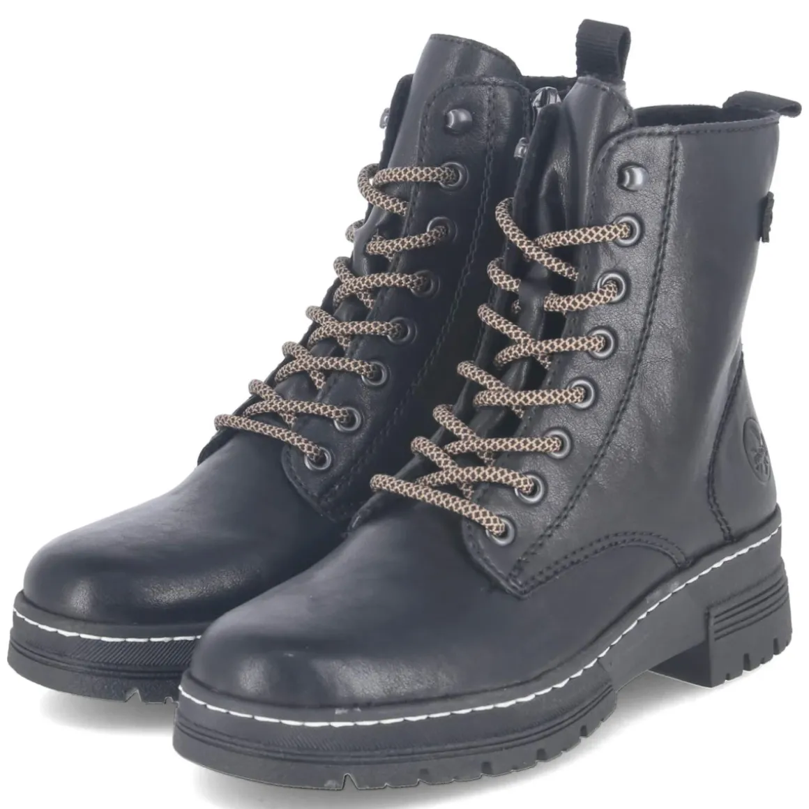 Klassische Rieker Damen-Schnürboots in Schwarz verbinden Wärme, Komfort und Alltagstauglichkeit. Das pflegeleichte Synthetik-Obermaterial bewährt sich im urbanen Herbst-Winter, während Warmfutter und textile Decksohle behaglich umschließen. Dank Schnürsenkel und seitlichem Reißverschluss sitzt der Schuh passgenau und lässt sich schnell an- und ausziehen; die Anziehlasche erleichtert den Einstieg zusätzlich. Ein 4 cm hoher Blockabsatz sorgt für einen stabilen Stand, die flexible, rutschfeste Laufsohle gibt Halt auf glatten Wegen. Die runde Spitze und das komfortable Wechselfußbett bieten Zehenfreiheit und individuelle Dämpfung, ideal auch für eigene Einlagen. Fällt normal aus und überzeugt mit klassischem Design, das vielseitig kombinierbar bleibt. Modetipp: Zu Strick-Midirock, blickdichter Strumpfhose und Oversize-Wollmantel entsteht ein mühelos eleganter City-Look.