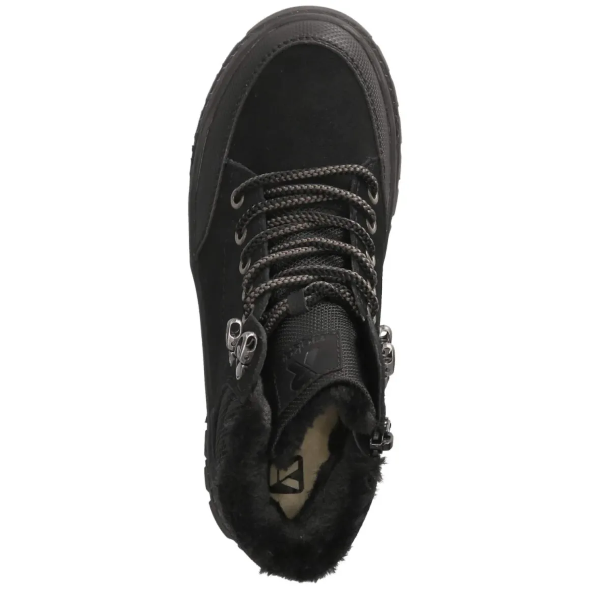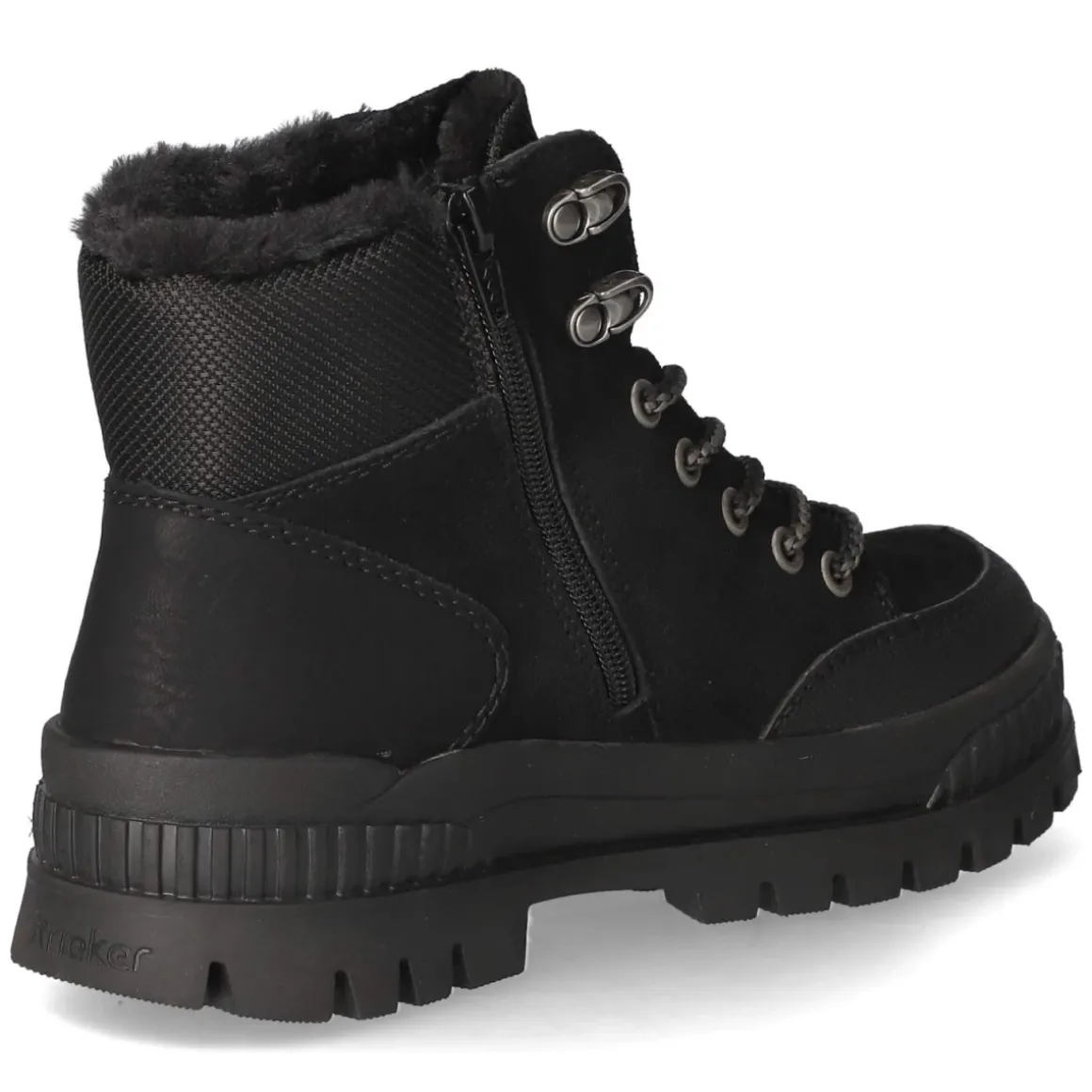 Diese Rieker Schnürstiefeletten für Damen verbinden einen modernen Material-Mix aus Leder und Synthetik mit durchdachter Funktion für kalte Tage. Das warme Futter und die wasserabweisende TEX-Ausstattung schützen bei winterlichem Wetter, während die textile Decksohle und das herausnehmbare Fußbett für angenehmen Tragekomfort sorgen. Die runde Schuhspitze lässt den Zehen Raum, der verstärkte Zehen- und Fersenbereich erhöht die Langlebigkeit. Schnürsenkel in Kombination mit seitlichem Reißverschluss erleichtern den Einstieg und sichern den Halt. Die flexible, rutschfeste Profilsohle gibt Trittsicherheit auf nassem Asphalt. In klassischem Schwarz und mit normal ausfallender Passform entsteht ein Look für den perfekten Auftritt zwischen Alltag und Anlass. Modetipp: Zu schmaler Denim, feinem Rollkragen und einem strukturierten Wollmantel entsteht ein clean-urbanes Ensemble.