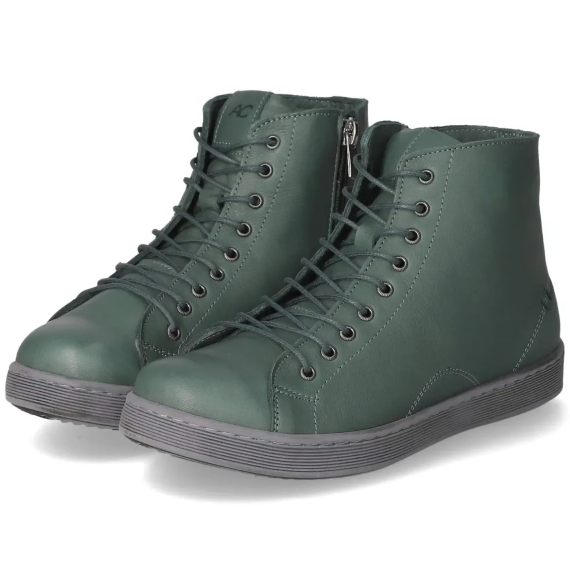 Die Schnürstiefeletten von Andrea Conti zeigen sich in frischem Grün und vereinen robustes Design mit femininer Note. Weiches Glattleder aus langlebigem Echtleder formt die runde Schuhspitze und schmiegt sich angenehm an. Die Kombination aus Schnürsenkeln und zusätzlichem Reißverschluss erleichtert den Einstieg, während die verstärkte Ferse sicheren Halt gibt. Ein komfortables Wechselfußbett mit Decksohle aus Leder bietet dämpfenden Komfort und lässt sich bei Bedarf gegen eigene Einlagen tauschen. Modische Ziernähte, metallische Akzente und ein dezentes Markendetail betonen den zeitlosen Look. Die flexible, rutschfeste Laufsohle sorgt für Trittsicherheit im Alltag. Die Passform fällt normal aus und richtet sich an Damen. Modetipp: Das kräftige Grün wirkt besonders stimmig zu dunkelblauen Jeans, cremefarbenem Strick und einem Mantel in Camel für einen lässig-eleganten City-Style.
