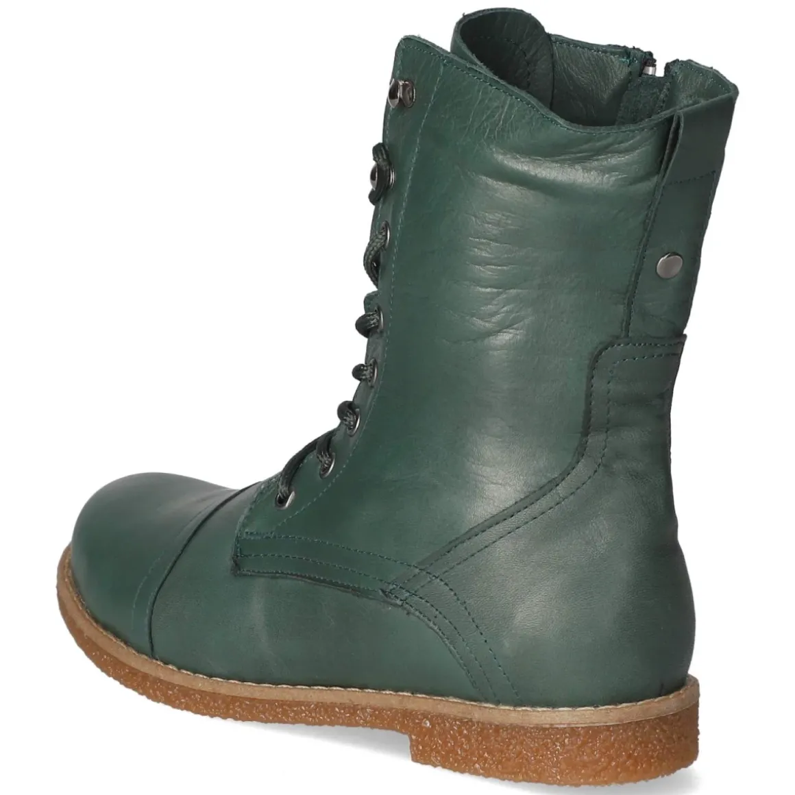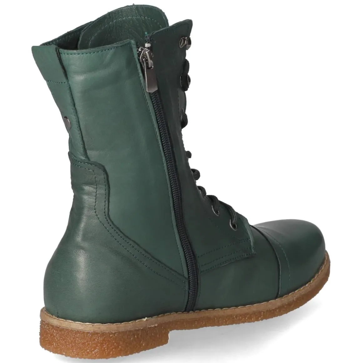 Die grünen Schnürstiefeletten von Andrea Conti vereinen lässige Optik mit durchdachtem Komfort. Glattes Echtleder mit runder Kappe und verstärktem Zehen- sowie Fersenbereich sorgt für langlebige Formstabilität, während die atmungsaktive Qualität ein ausgeglichenes Fußklima unterstützt. Ein 2 cm hoher Blockabsatz bietet entspannte Standfestigkeit im Alltag. Praktisch: die Kombination aus Schnürung und seitlichem Reißverschluss für schnellen Einstieg, unterstützt von Anziehlasche und rutschhemmender, flexibler Laufsohle. Das leichte Fleecefutter wärmt an kühlen Tagen, die gepolsterte, herausnehmbare Decksohle erhöht den Tragekomfort und kann bei Bedarf gegen eigene Einlagen getauscht werden. Der Passformhinweis „fällt normal aus“ erleichtert die Größenwahl. Modetipp: Zum Midi-Plissérock und einem groben Strickpullover entsteht ein moderner Kontrast, der die frische Grüntonung wirkungsvoll hervorhebt.