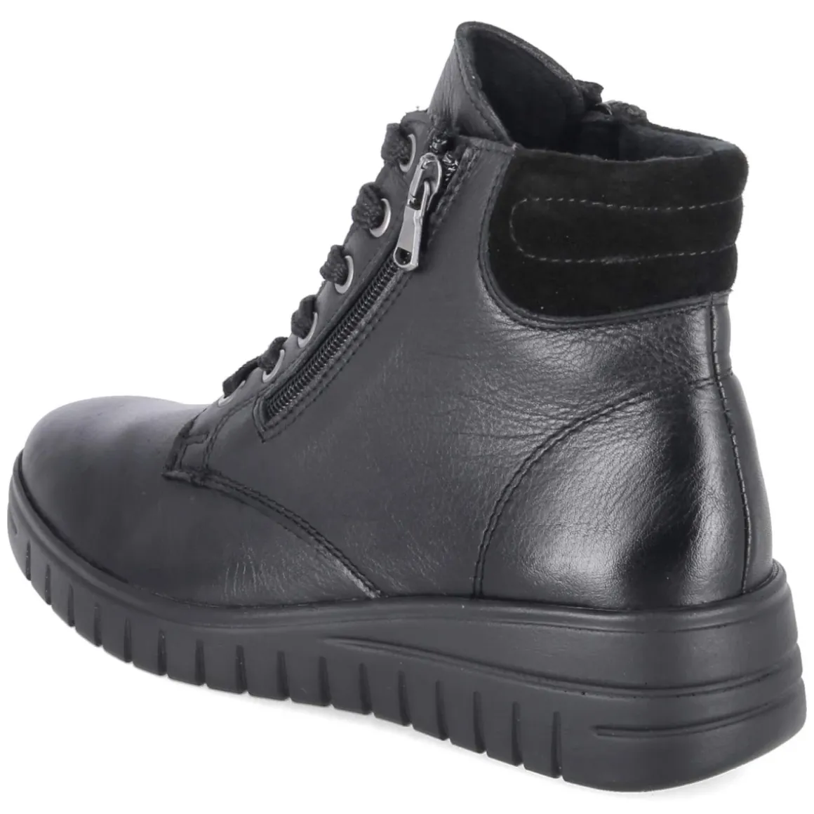 Die Schnürstiefeletten ISLA 06 von Beliana verbinden klare Linien mit Alltagstauglichkeit. Glattes, langlebiges Echtleder in klassischem Schwarz trifft auf eine runde Kappe und eine Kombination aus Schnürung und zusätzlichem Reißverschluss, die das An- und Ausziehen erleichtert. Das leichte Futter wärmt an kühlen Tagen, während der gepolsterte Einstieg und das Wechselfußbett angenehmen Tragekomfort ermöglichen. Eine sehr flexible, rutschfeste Laufsohle sorgt für sicheren Halt, der verstärkte Fersenbereich für Stabilität. Die Passform fällt normal aus und bietet vielseitige Styling-Optionen von Casual bis Smart. Modetipp: Besonders modern wirkt das Modell zu verkürzten Mom-Jeans, einem strukturierten Strickpullover und einem langen Wollmantel – ein Look, der Schlichtheit mit urbanem Charme verbindet.
