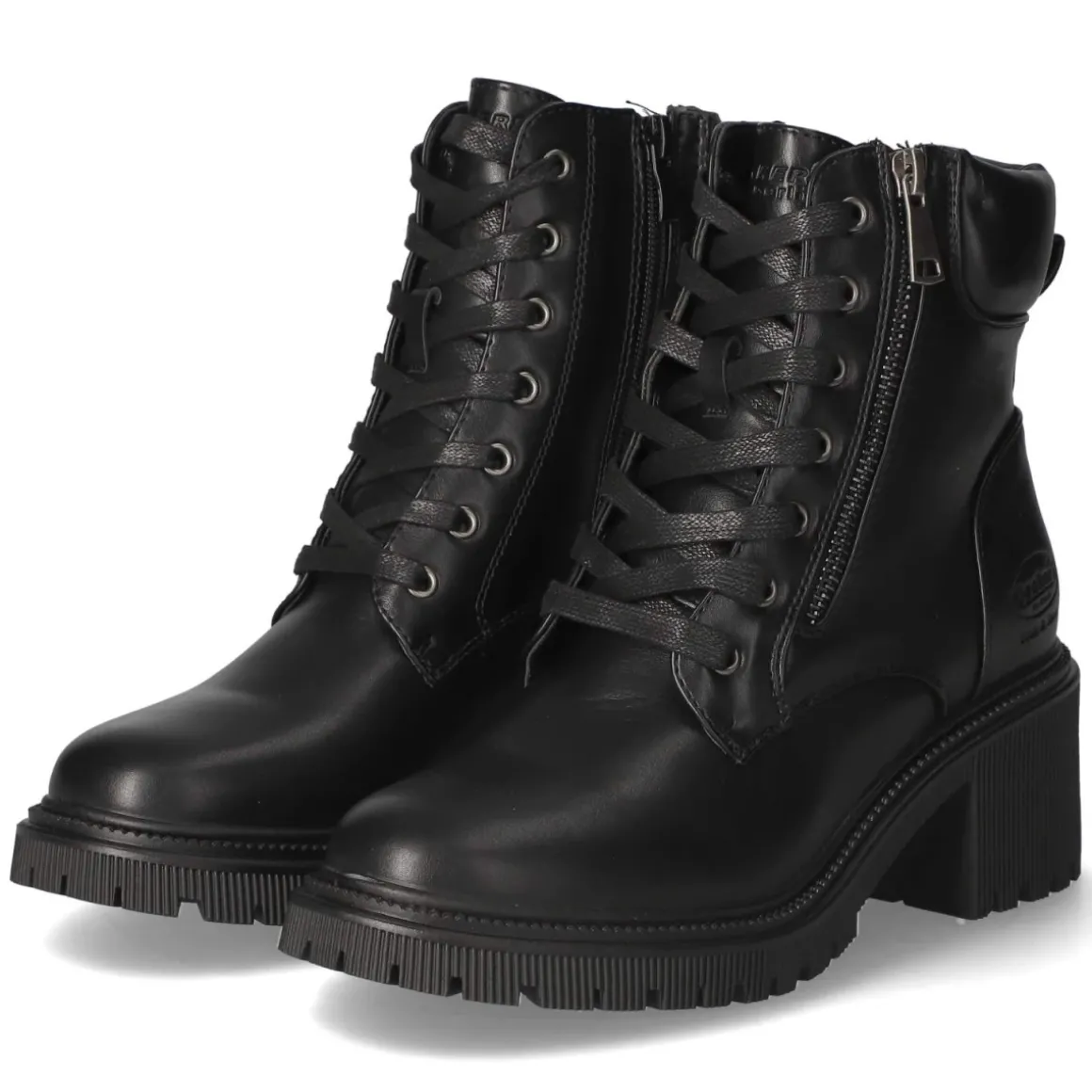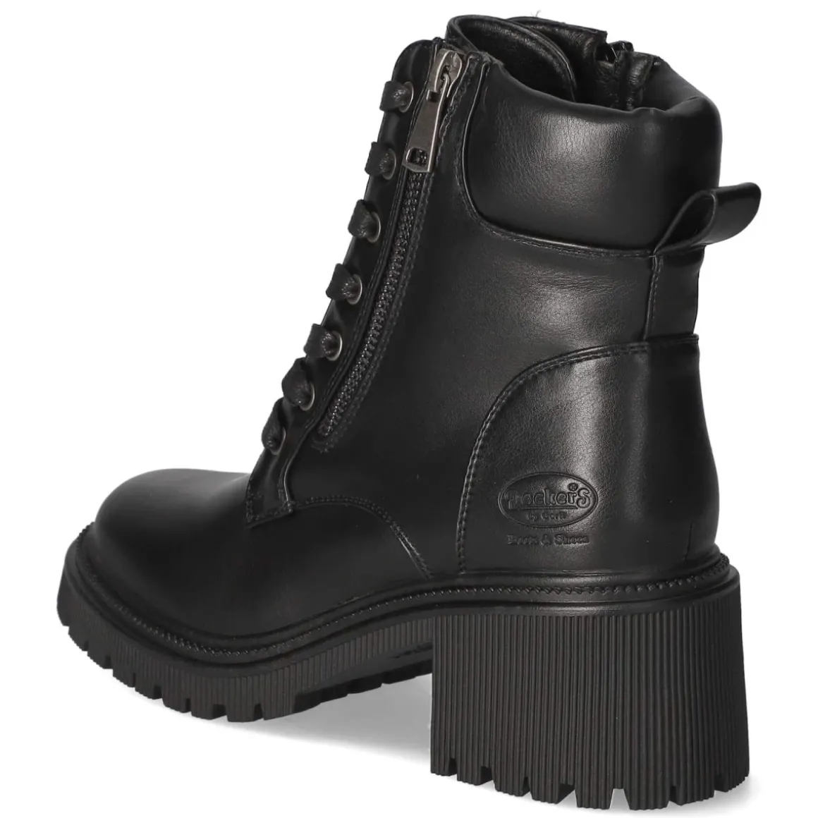Die Dockers Schnürstiefeletten für Damen verbinden urbane Robustheit mit alltagstauglichem Komfort. Das Obermaterial aus widerstandsfähiger Synthetik zeigt sich in tiefem Schwarz, ergänzt um ein dezentes Markenlogo. Die runde Spitze und der 6 cm hohe Blockabsatz sorgen für einen ausgewogenen Auftritt, der Stabilität bietet und die Silhouette dezent streckt. Für angenehmes Tragegefühl stehen das gepolsterte Fußbett, die textile Decksohle sowie der weich gepolsterte Einstieg. Eine verstärkte Ferse unterstützt zusätzlich den Halt. Schnürsenkel erlauben individuelle Anpassung, während der seitliche Reißverschluss das An- und Ausziehen erleichtert; die Anziehlasche bringt Extra-Komfort. Die Passform fällt größengetreu aus und passt damit zuverlässig in den Alltag von Beruf bis Freizeit. Modetipp: Zu einer schmalen Jeans und einem Oversize-Strick kombiniert entsteht ein moderner Kontrast aus schlanker Silhouette und markantem Boot.