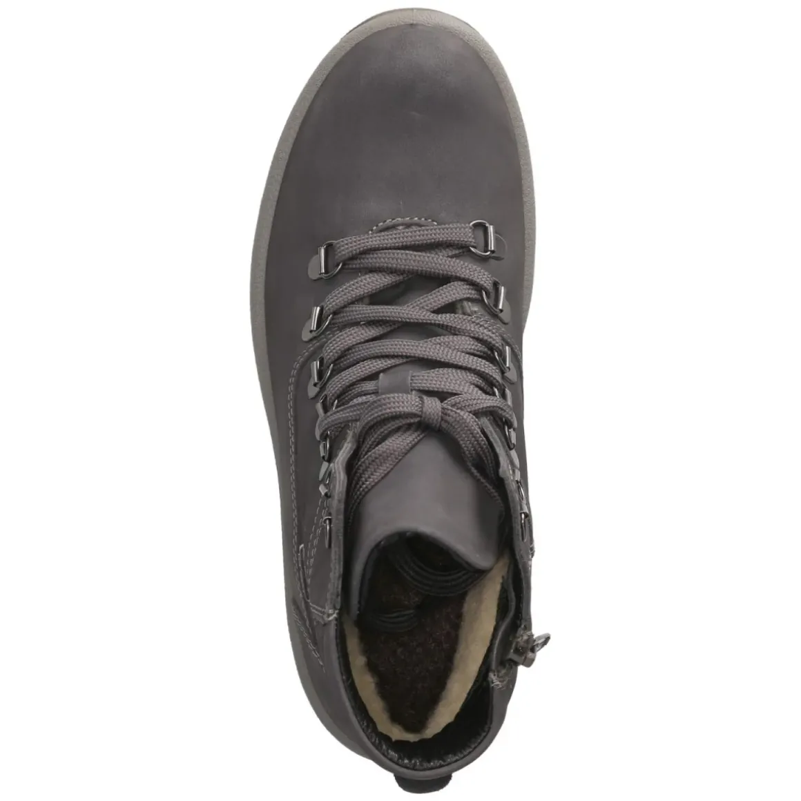 Die grauen Schnürstiefeletten von Beliana verbinden wetterfeste Funktion und lässige Eleganz. Atmungsaktives Echtleder aus hochwertigem Rauleder trifft auf eine wasserabweisende Ausrüstung, die souverän durch kühle Tage führt. Der runde Leisten sorgt für entspannten Zehenraum, während die verstärkte Ferse stabilisiert. Dank Schnürung und seitlichem Reißverschluss mit zusätzlichem Zipper gelingt der Einstieg spielend, unterstützt von der praktischen Anziehhilfe. Innen verwöhnt ein leichtes Filzfutter; das gepolsterte, textile bezogene Wechselfußbett lässt sich bei Bedarf austauschen. Die flexible, rutschfeste Laufsohle bietet sicheren Grip in der Stadt. In Grau vielseitig kombinierbar und in der Passform verlässlich, da das Modell normal ausfällt. Modetipp: Zu Cropped-Jeans, Feinstrickrolli und langem Wollmantel entsteht ein moderner City-Look.