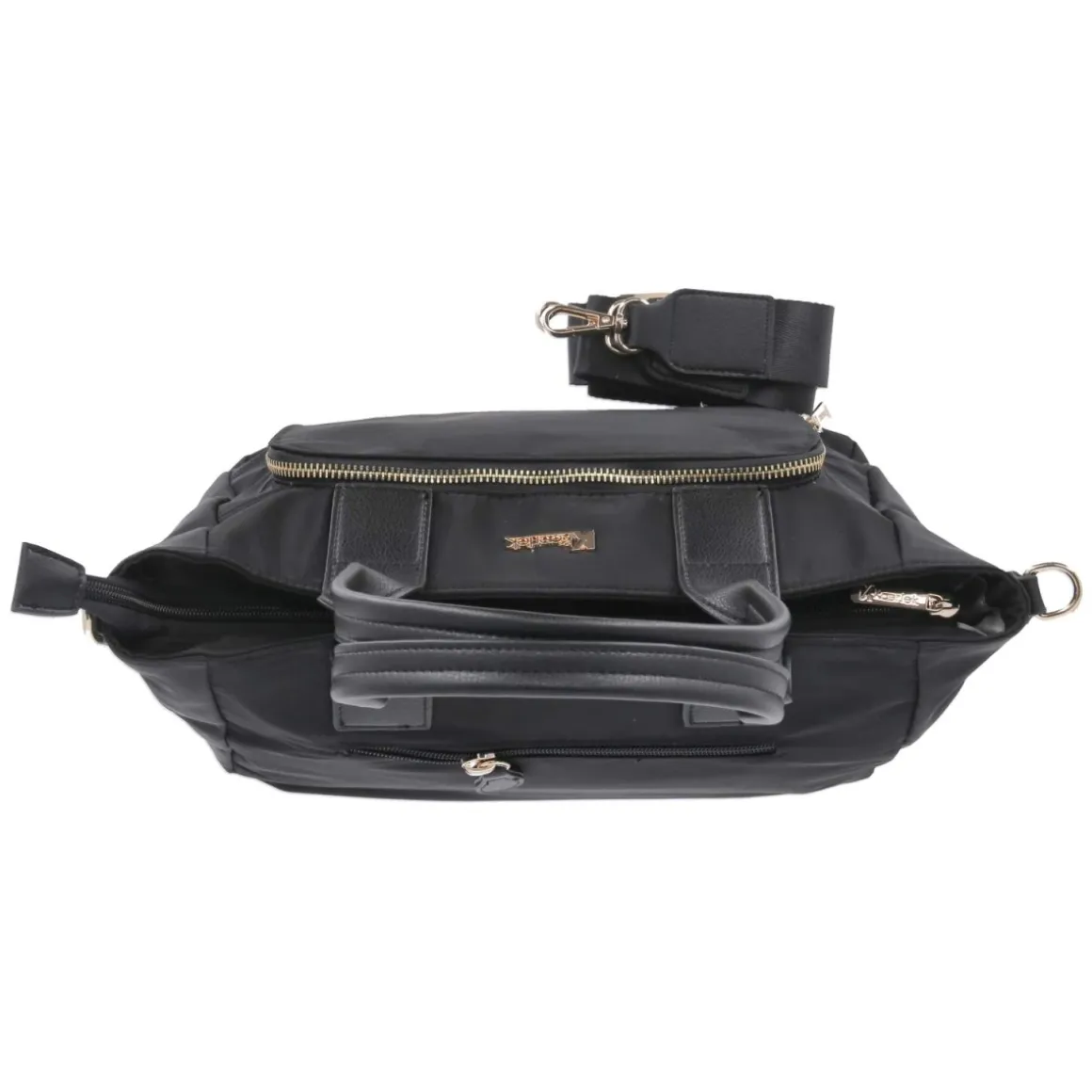 Zeitloser Damen-Shopper in Schwarz, der Eleganz und Alltagstauglichkeit vereint. Die goldglänzenden Metallelemente setzen edle Akzente, während der verstärkte Boden Struktur und Standfestigkeit bringt. Mit ca. 25 x 30 x 15 cm bietet das Format rund 10 Liter Volumen für tägliche Essentials. Der sichere Reißverschluss schützt den Inhalt, außen vorne und hinten sorgen zusätzliche RV-Fächer für schnellen Zugriff. Innen halten zwei Steckfächer und ein weiteres RV-Fach Ordnung. Zwei Henkel von ca. 50 cm ermöglichen bequemes Tragen in der Hand oder über der Schulter, der lange, verstellbare Gurt von ca. 120 cm erweitert die Trageoptionen bis zur Crossbody-Variante. Der Look bleibt klar, modern und vielseitig von Büro bis Dinner. Modetipp: Zum schwarzen Blazer, weißer Bluse und Goldschmuck tragen, um die Hardware aufzugreifen; dazu Loafer oder zarte Slingbacks für ein stimmiges Finish.