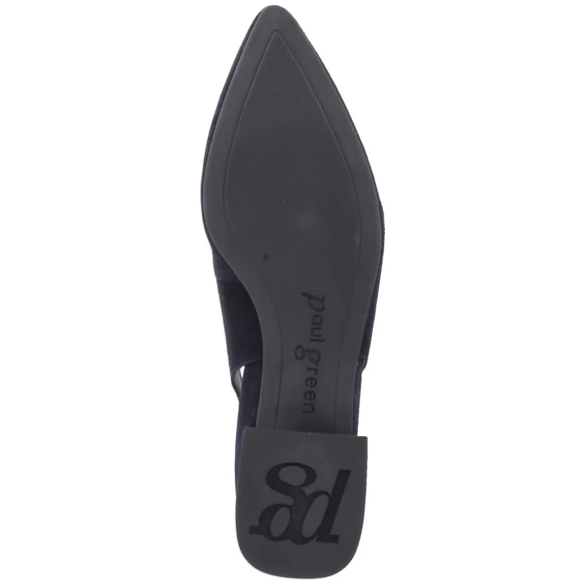 Die Slingballerinas von Paul Green setzen auf eine moderne, feminine Linie in edlem Dunkelblau. Feines Rauleder mit samtiger Oberfläche betont die spitz zulaufende Form, während ein aufgesetztes Element im Zehenbereich einen stilvollen Akzent liefert. Der 3 cm hohe Blockabsatz verleiht dezente Höhe und souveränen Halt. Für Komfort sorgen die leicht gepolsterte, hautfreundliche Lederdecksohle und die flexible, rutschhemmende Laufsohle. Der Fersenriemen mit Schnalle und Elastikeinsatz bietet passgenauen Sitz, das Modell fällt normal aus. So entsteht ein vielseitiger Begleiter für Büro und Anlass, der Eleganz und Alltagstauglichkeit mühelos verbindet. Modetipp: Zu schmaler Zigarettenhose und fließender Seidenbluse kombinieren, dazu ein strukturierter Blazer in Marine für einen klaren, urbanen Look.