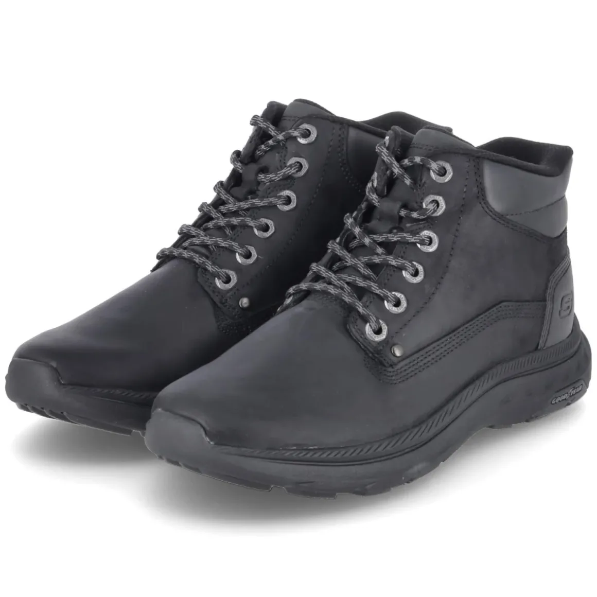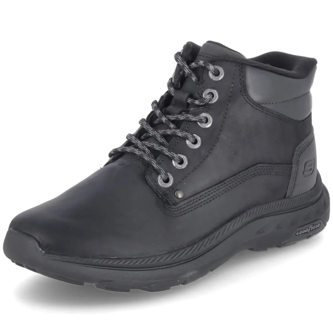 Der Slip-Ins Boot POLLARD – WAYLON von Skechers kombiniert einen robusten Material-Mix aus Leder und Synthetik mit sportiver Linienführung. In sattem Schwarz und mit runder Spitze gestaltet, passt der Herrenschuh mühelos zu urbanen wie lässigen Looks. Die bequeme Elastikschnürung erleichtert das Hineinschlüpfen und sorgt zugleich für sicheren Halt. Innen verwöhnt die beste Memory-Foam-Fußbettung mit weicher Dämpfung, während ein gepolsterter Einstieg und der verstärkte Fersenbereich zusätzlichen Komfort und Stabilität bieten. Die flexible, rutschhemmende GOODYEAR-Profilsohle greift zuverlässig, das geringe Gewicht unterstützt ein entspanntes Tragegefühl über den Tag. Der Schnitt fällt normal aus und überzeugt mit ausgewogenem Platzangebot im Vorfuß. Modetipp: Mit Raw-Denim, grauem Merinopullover und einer cleanen Utility-Jacke entsteht ein smarter City-Look.