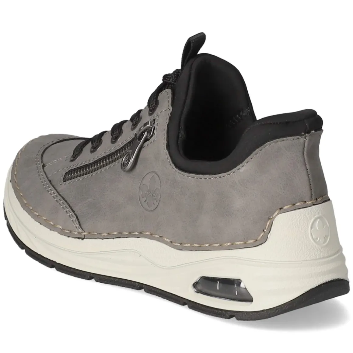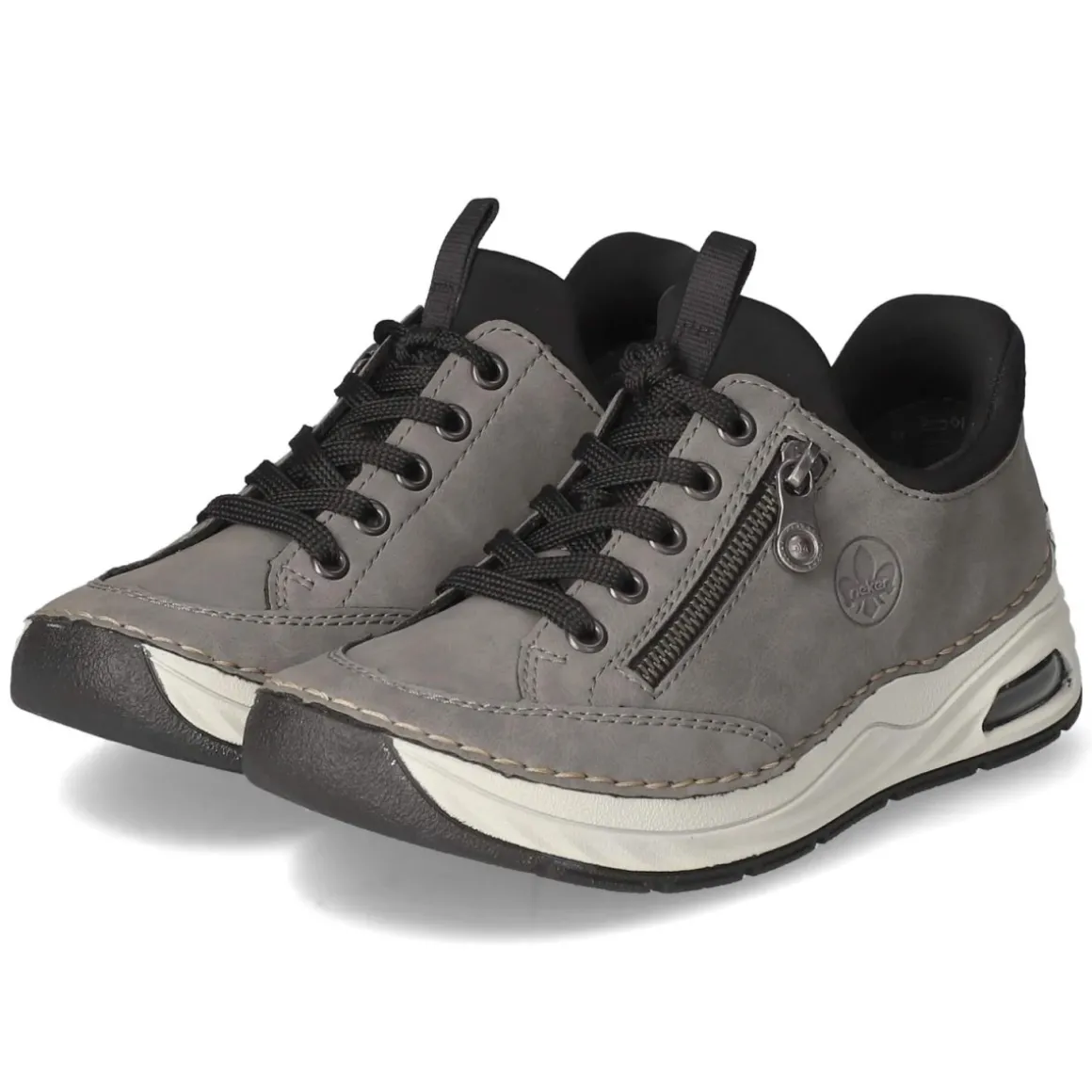 Der Slip Ins Sneaker von Rieker in Grau vereint lässigen City-Style mit komfortorientierter Ausstattung. Das Obermaterial aus Textil und Synthetik zeigt einen modernen Material-Mix, während die runde Schuhspitze und der bequem gepolsterte Einstieg entspanntes Tragen ermöglichen. Dank Schnürung lässt sich der Sitz individuell anpassen; eine praktische Anziehlasche erleichtert das Hineinschlüpfen. Markendetails und ein Zierreißverschluss setzen dezente Akzente. Die flexible, rutschhemmende Laufsohle mit Sichtfenster sorgt für dynamische Optik und sicheren Tritt, der verstärkte Zehen- und Fersenbereich addiert Stabilität. Die Lederdecksohle rundet den Tragekomfort ab. Fällt normal aus und ist auf die Bedürfnisse erwachsener Damen abgestimmt. Modetipp: Mit hell gewaschener Jeans, Feinstrick und einem grauen Trench entsteht ein müheloser, urbaner Ton-in-Ton-Look.