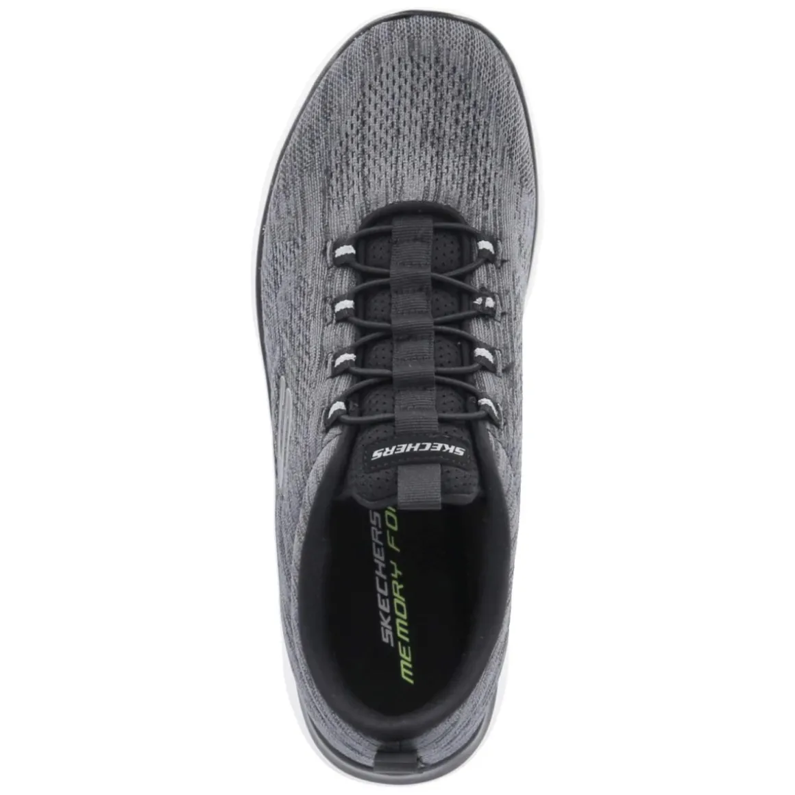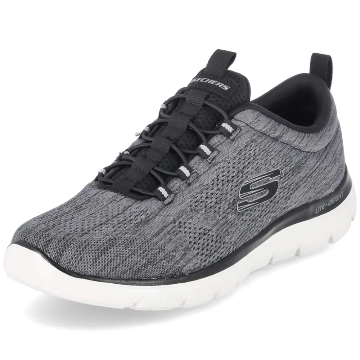 Der Slip-On-Sneaker SUMMITS von Skechers bringt entspannten Komfort in den Alltag. Das melierte Grau und typische Markendetails verleihen dem cleanen Design Tiefe, während Elastikbänder in Schnüroptik und zwei Anziehlaschen den unkomplizierten Einstieg erleichtern. Weiches Textil als Obermaterial und Decksohle schmiegt sich angenehm an, die gepolsterte Öffnung dämpft Druckstellen. Das bewährte Memory-Foam-Fußbett federt jeden Schritt sanft ab, die flexible, rutschhemmende Profilsohle sorgt für Halt auf urbanem Terrain. Mit runder Spitze und normaler Passform eignet sich das Modell ideal für Beruf, Reise und Freizeit. Waschmaschinengeeignet für frische Leichtigkeit im Handumdrehen. Modetipp: Zur schmalen Chino und einem leichten Strickpullover kombinieren und mit einer minimalistischen Bomberjacke abrunden – so entsteht ein smarter, sportiver Look.