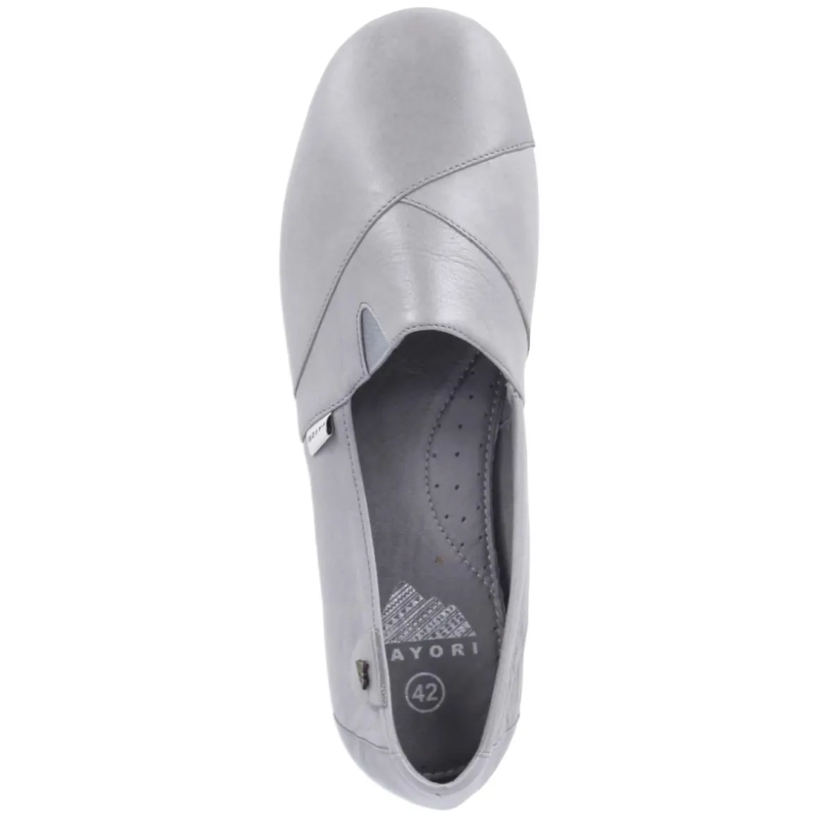 Der graue Slipper von Mayori steht für lässige Eleganz und lange Lebensdauer. Glattes, hochwertiges Echtleder umschließt den Fuß weich, die runde Spitze und die normale Passform sorgen für entspannten Raum. Ein elastischer Keil am Spann erleichtert das Hineinschlüpfen, während das gepolsterte, lederbezogene Wechselfußbett individuellen Komfort ermöglicht – ideal auch für eigene Einlagen. Die dünne, flexible Laufsohle mit griffiger Struktur gibt natürliche Abrollbewegung und sicheren Halt, ohne zu beschweren. Dezent gesetzte Ziernähte und ein kleines Markenlabel runden den puristischen Look ab. Als relaxtes Leichtgewicht eignet sich das Modell für Alltag, Büro und Reise gleichermaßen. Modetipp: Zu grauen oder navyfarbenen Chinos und einem unstrukturierten Sakko entsteht ein smarter City-Look.