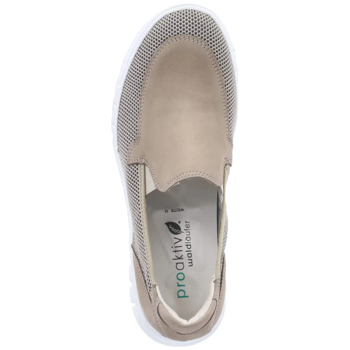 Der Slipper BIRDY von Waldläufer verbindet einen modernen Material-Mix aus Leder und Textil mit lässigem Komfort. Das taupefarbene Design setzt auf eine runde Schuhspitze und seitliche Stretcheinsätze, die den Einstieg erleichtern und den Spann sanft umschmeicheln. Meshteile in geflochtener Optik sorgen für leichte Luftigkeit, während die verstärkte Ferse Stabilität bietet. Die gepolsterte, herausnehmbare Lederdecksohle ist hautfreundlich und lässt Raum für eigene Einlagen. Als relaxtes Leichtgewicht mit sehr flexibler, rutschfester Laufsohle mit Profil eignet sich der Slipper für längere Tage auf den Beinen. Der Passformhinweis fällt normal aus, der Verschluss bleibt bewusst weg für ein cleanes Bild. Modetipp: Ton-in-Ton mit Leinenhose und Feinstricktop trägt der Slipper ein edles Monochrom-Statement; ein silbernes Armband setzt einen subtilen Akzent.