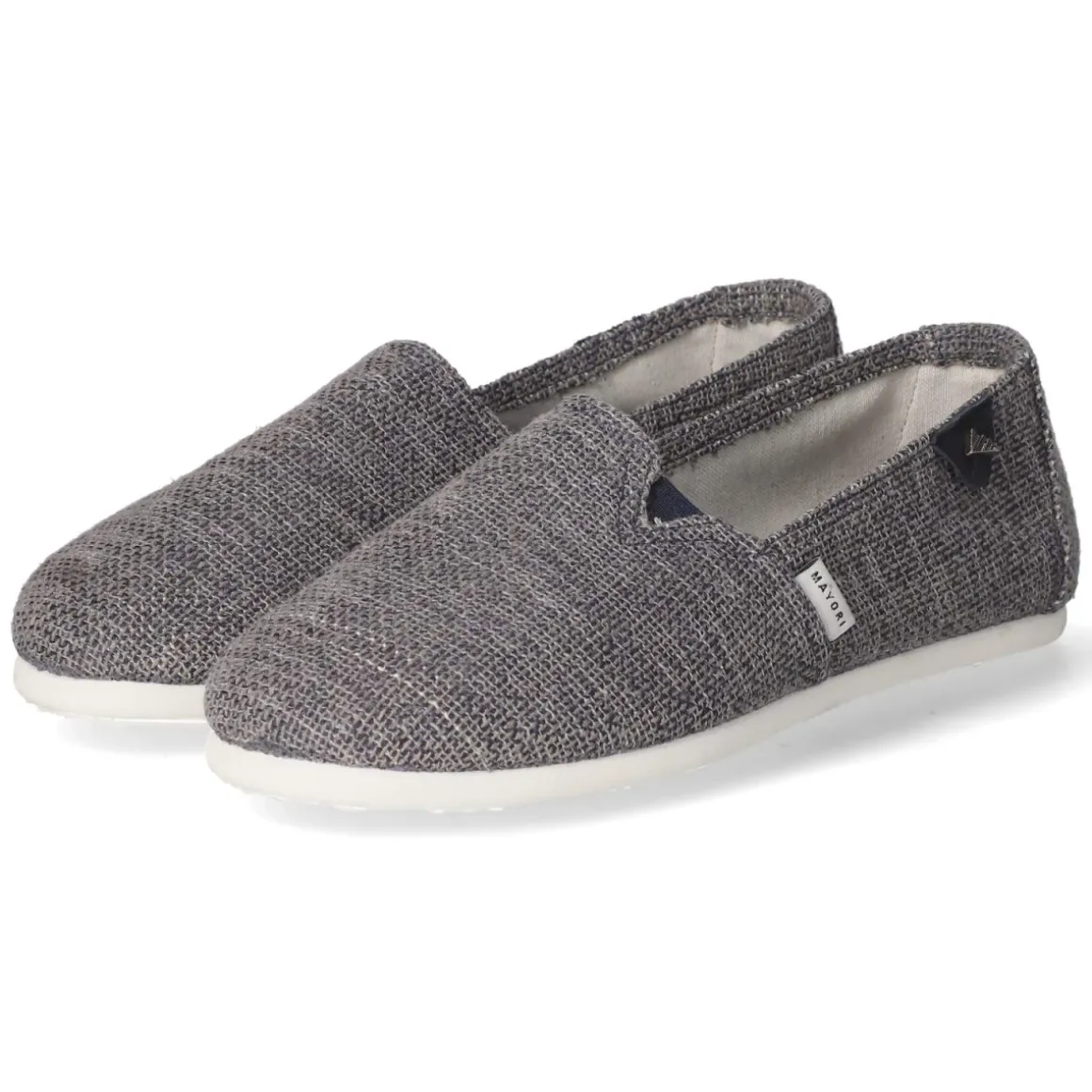 Der Mayori Slipper präsentiert sich als zeitloser Begleiter in dunklem Blau und verbindet lässige Canvas-Optik mit durchdachter Funktion. Das leichte Textilobermaterial sorgt für angenehme Luftzirkulation, während der kleine Elastikeinsatz den unkomplizierten Einstieg unterstützt und sicheren Halt bietet. Eine verstärkte Ferse erhöht die Formstabilität, die flexible Laufsohle fördert ein natürliches Abrollen. Innen verwöhnt eine Decksohle aus Leder, das komfortable Wechselfußbett lässt sich bei Bedarf austauschen oder lüften. Die runde Schuhspitze unterstreicht den entspannten Look, Markendetails setzen dezente Akzente. Hinweis zur Passform: fällt schmaler aus, daher empfiehlt sich die Bestellung eine Nummer größer. Ein echtes Leichtgewicht für Alltag und Reise. Modetipp: Perfekt zu sandfarbenen Chinos und gestreiftem Bretonshirt oder zu hell gewaschener Denim.