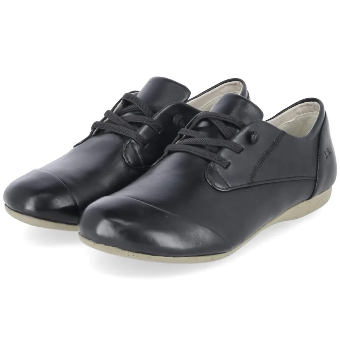 Der Slipper FIONA 01 von Josef Seibel vereint zeitlose Eleganz und Komfort für Damen. Schwarzes Glattleder in langlebiger Echtleder-Qualität trifft auf eine runde Schuhspitze und dezente Ziernähte, die dem Design Leichtigkeit verleihen. Das Lederfutter sorgt für ein angenehm ausgeglichenes Fußklima, unterstützt von einer Leder-Textil-Decksohle. Dank Wechselfußbett lässt sich die Einlage individuell anpassen. Die Schnürsenkel mit kurzer Elastikschnürung erleichtern den Einstieg und halten sicher, während eine dünne, flexible Laufsohle mit verlässlichem Grip ein relaxtes Leichtgewicht-Gefühl vermittelt. Verstärkte Fersen- und Zehenpartien bringen Stabilität in den Alltag. Der Schuh fällt normal aus und passt so unkompliziert zur gewohnten Größe. Modetipp: Als ruhiger Kontrast zu fließenden Midikleidern oder zu Cropped-Jeans und einem weißen Hemd getragen, entsteht ein moderner, reduzierter Look.