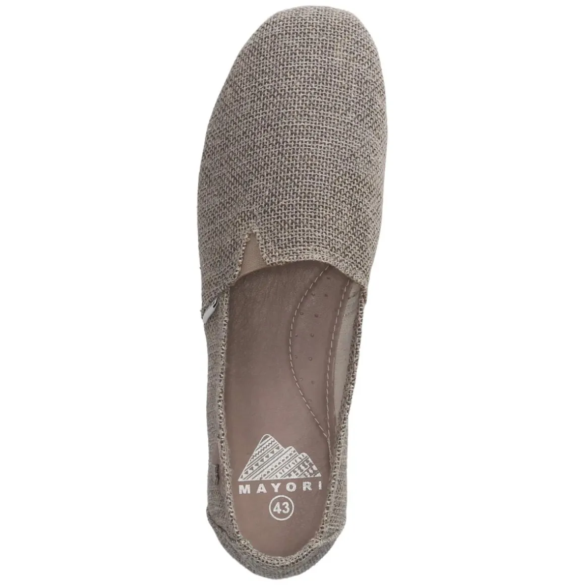 Der Mayori Slipper in Grau interpretiert lässigen Komfort für Herren in einer klaren, natürlichen Formensprache. Das Obermaterial aus robustem Canvas-Textil wird von dezenten Markendetails akzentuiert, während die runde Spitze und der Elastikeinsatz am Spann ein unkompliziertes Hineinschlüpfen ohne Verschluss ermöglichen. Innen sorgt eine Decksohle aus Leder zusammen mit dem herausnehmbaren Wechselfußbett für ein angenehmes Fußklima, die flexible Laufsohle unterstützt das entspannende, geringe Gewicht mit geschmeidiger Abrollbewegung. Das Modell fällt schmaler aus; für mehr Bewegungsfreiheit ist meist eine Nummer größer die stimmige Wahl. Seine ausgewogene Konstruktion begleitet den Tag vom morgendlichen Weg bis in den Feierabend mit zuverlässiger Leichtigkeit. Modetipp: In Kombination mit gekrempelter Chino und Feinstrick in Naturtönen entsteht ein souveräner Casual-Look, den die graue Farbgebung elegant abrundet.