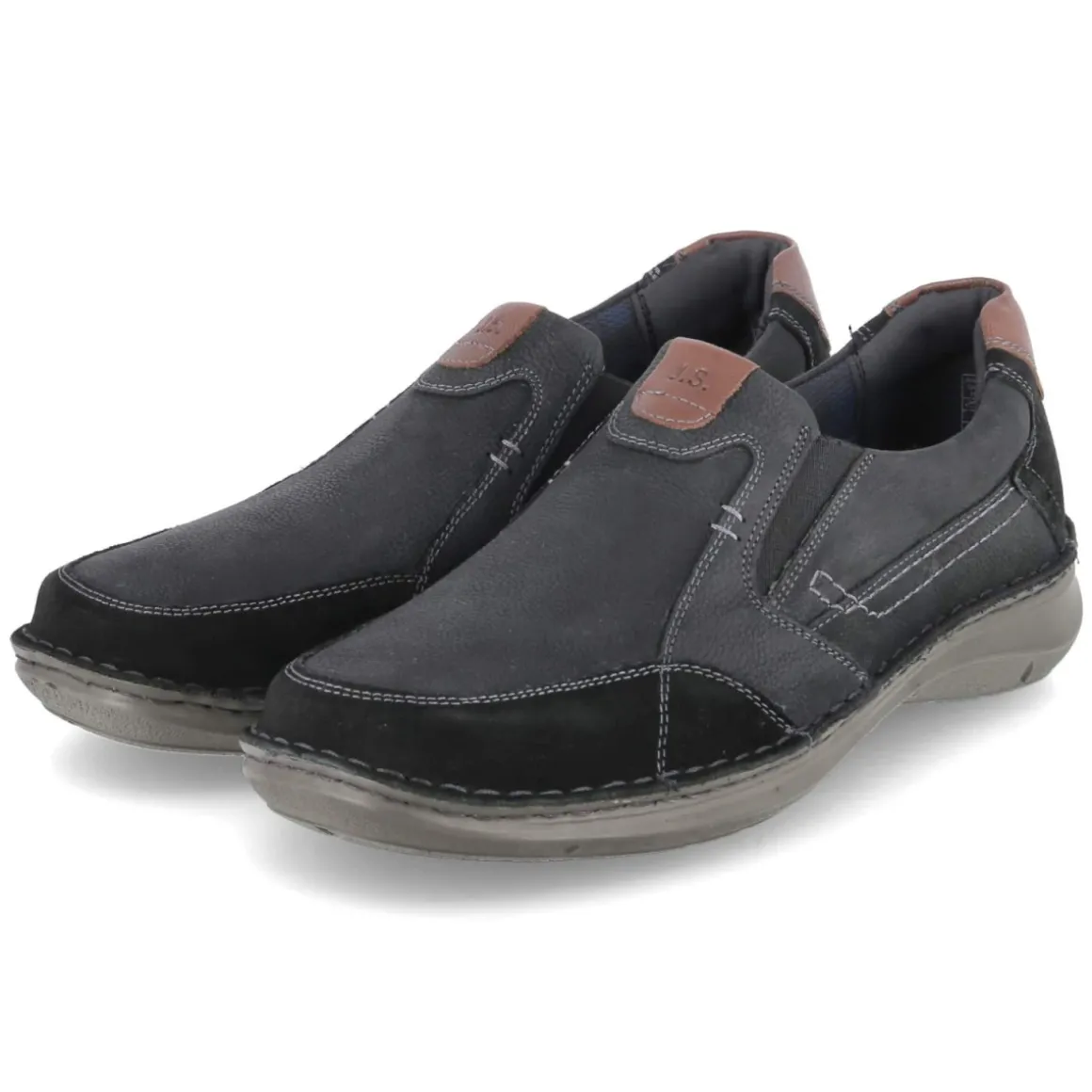 Der Slipper NEW ANVERS 01 von Josef Seibel vereint sportliche Optik und komfortorientiertes Design in einem zeitlosen Schwarz. Das weiche Rauleder schmiegt sich angenehm an den Fuß, während die hautfreundliche Lederdecksohle atmungsaktive Eigenschaften bietet. Ein karreeförmiger Leisten sorgt für moderne Linien und ausreichend Zehenfreiheit. Dank seitlicher Elastikeinsätze gelingt das Hineinschlüpfen mühelos, der leicht gepolsterte Einstiegsbereich erhöht den Tragekomfort zusätzlich. Die flexible Laufsohle mit leichtem Profil unterstützt sicheren Halt im Alltag, während verstärkte Zehen- und Fersenpartien für Langlebigkeit stehen. Das Wechselfußbett erlaubt individuelle Einlagen, Größen fallen verlässlich normal aus. Modetipp: Im Business-Casual mit schmaler Chino und Strickpolo oder am Wochenende mit dunkler Denim und leichter Hemdjacke wirkt der Slipper besonders souverän.