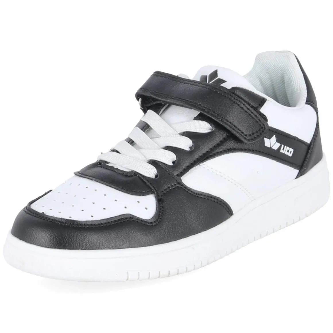 Der Sneaker CHAD VS von Lico vereint kindgerechten Komfort mit sportlichem 90er-Design. Das weiße Synthetik-Obermaterial mit schwarzen Elementen ist pflegeleicht und lässt sich im Alltag schnell reinigen. Die Passform fällt normal aus, während ein gepolsterter Einstieg und das weich abgefederte, herausnehmbare Fußbett langanhaltenden Tragekomfort sichern. Klettverschluss und Elastikband in Schnüroptik erleichtern das Handling und geben zusammen mit der runden Spitze sicheren Halt. Eine flexible Laufsohle mit Grip unterstützt natürliche Abrollbewegungen, der verstärkte Fersen- und Zehenbereich sorgt für zusätzliche Stabilität. Das gelochte Schuhdeck fördert die Luftzirkulation – ideal für Spielplatz, Schule und Freizeit. Modetipp: Mit Jogger, College-Jacke und gerippten Sportsocken entsteht ein cooler Retro-Look.