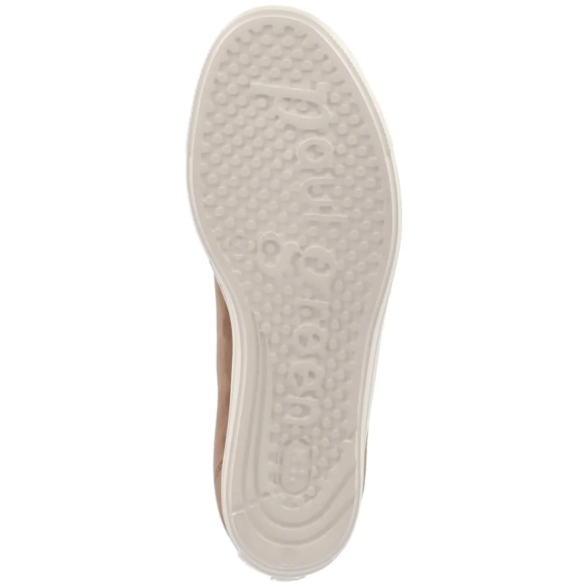 Der Sneaker von Paul Green vereint dezente Eleganz mit lässigem Komfort. Die samtige Rauleder-Oberfläche in Braun verleiht dem schlichten Design Tiefe und einen wertigen Griff. Dank elastischem Band in Schnüroptik gelingt das Hineinschlüpfen ohne Verschluss mühelos, während die runde Spitze und das 3 cm hohe Plateau für eine moderne Silhouette sorgen. Ein hautfreundliches Lederfutter und die lederne Decksohle umschmeicheln den Fuß angenehm, die rutschfeste Laufsohle liefert zuverlässigen Halt im Alltag. Eine Zunge mit leichtem Goldprint setzt einen feinen Akzent, der die hochwertige Verarbeitung unterstreicht. Vielseitige Kombinationsmöglichkeiten reichen von Casual bis Smart Casual und machen das Modell zum stilfesten Begleiter. Modetipp: Besonders harmonisch wirkt der Sneaker zu cropped Straight-Jeans, einem cremefarbenen Stricktop und filigranem Goldschmuck.