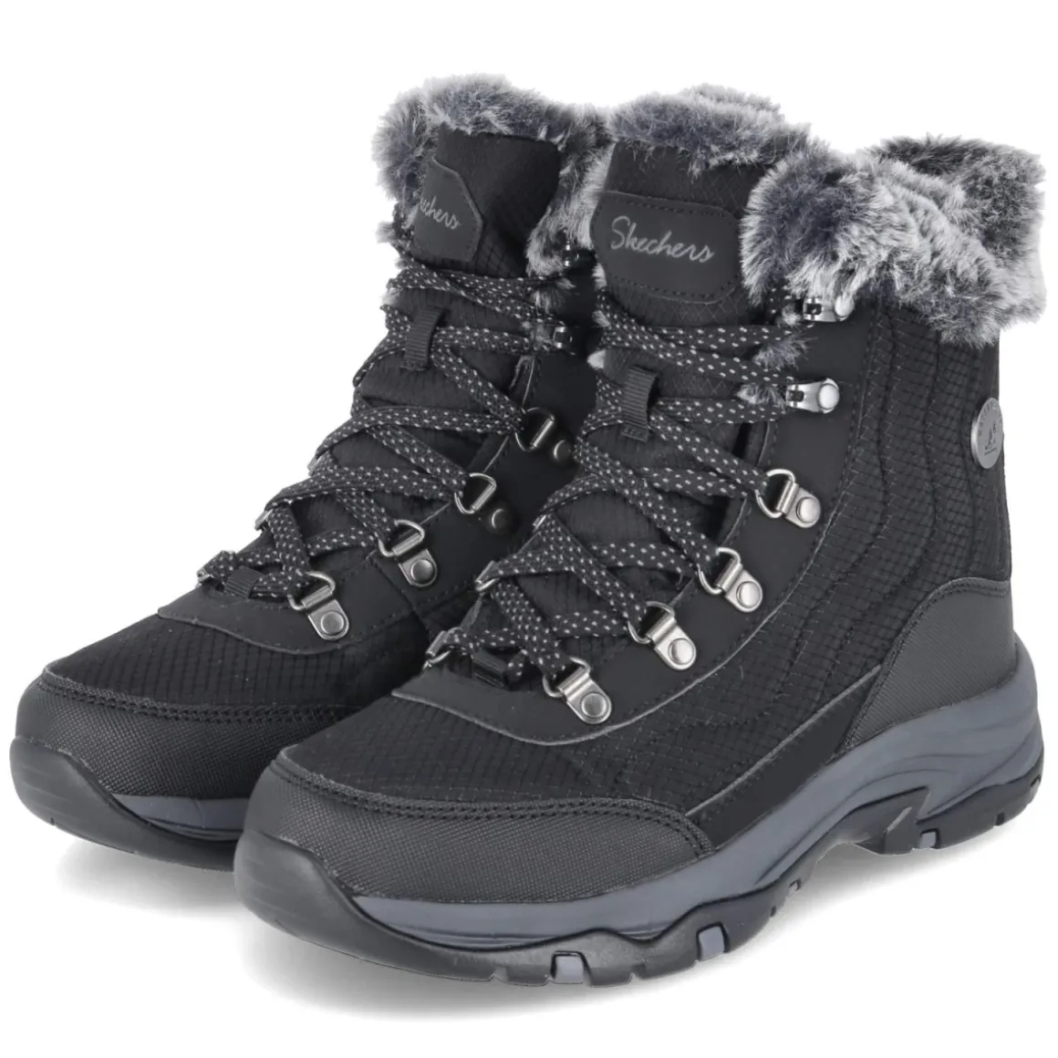 Der Snowboot TREGO-STORMIE von Skechers vereint funktionale Winter-Performance mit moderner Optik. Das Obermaterial aus Textil und Synthetik ist wasserabweisend, die Konstruktion zugleich wasserfest, während atmungsaktive Zonen das Klima regulieren. Warmfutter umschließt den Fuß, die beste Memory-Foam-Fußbettung entlastet bei jedem Schritt. Ein abgesteppter Schaft, verstärkter Fußrahmen und die rutschfeste Profilsohle geben Halt auf glatten Wegen. Die Schaftkrempe aus Kunstfell setzt einen weichen Akzent, die runde Spitze und die Schnürung sorgen für komfortablen Sitz; eine Anziehlasche erleichtert den Einstieg. In klassischem Schwarz und größengetreu geschnitten ist der Boot ideal für Damen im Alltag und Outdoor. Modetipp: Mit Steppjacke, Thermo-Leggings und grober Strickmütze entsteht ein cleaner City-Winterlook.