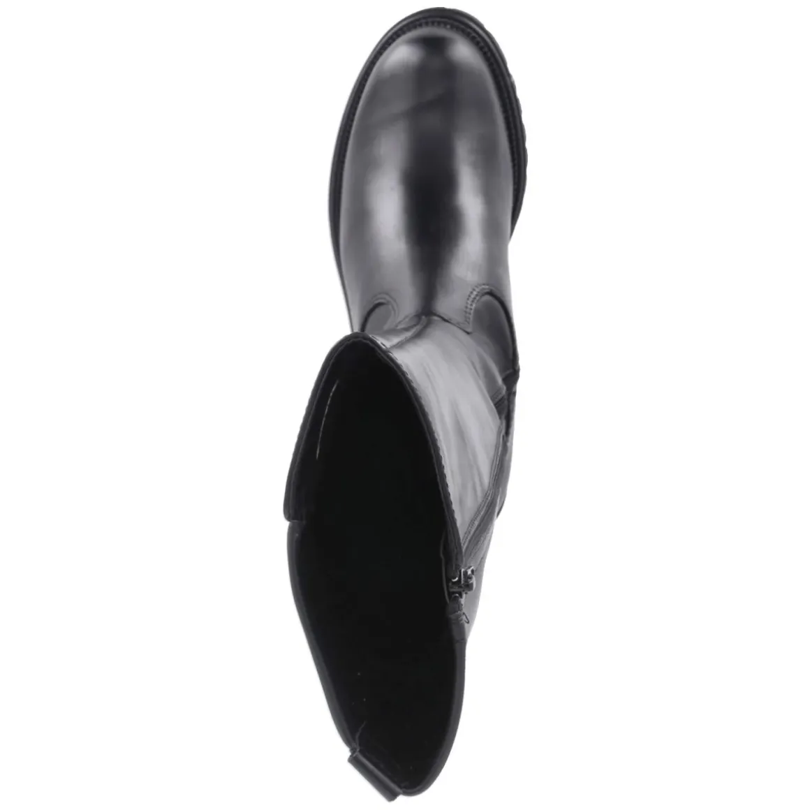 Der schwarze Tamaris-Stiefel präsentiert sich als verlässlicher Begleiter zwischen Alltag und City-Chic. Der robuste Material-Mix aus Leder und Synthetik verleiht Struktur und Langlebigkeit, während der 3 cm hohe Blockabsatz und die runde Schuhspitze für ein entspanntes Laufgefühl sorgen. Ein leicht stretchiger Schaft (ca. 36 cm Höhe, ca. 36 cm Umfang) unterstützt eine angenehme Passform, die regulär ausfällt. Der bequeme Reißverschlußeinstieg mit Anziehlasche erleichtert das Anziehen, das gepolsterte Fußbett sowie die Decksohle aus Textil und Synthetik umschließen den Fuß komfortabel. Die flexible, rutschfeste Laufsohle sichert Halt auf verschiedenen Untergründen. Modetipp: Besonders stimmig zu Midikleid aus Strick und klassischem Wollmantel für einen klaren, femininen Winter-Look.