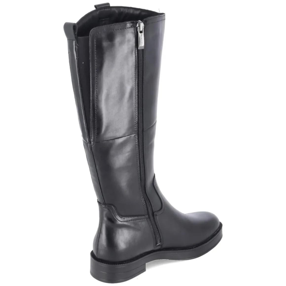 Zeitloses Design trifft auf Komfort: Der schwarze Tamaris Stiefel im Reitstiefellook überzeugt mit modernem Material-Mix aus Leder und Synthetik, runder Spitze und stabilem 3,5-cm-Blockabsatz. Das leichte Futter wärmt an kühlen Tagen, während die textile Decksohle und die flexible, rutschfeste Laufsohle für angenehm gedämpften Auftritt sorgen. Ein bequemer Reißverschlußeinstieg erleichtert das Anziehen, zwei Anziehlaschen und Elastikeinsätze am hinteren Schaft optimieren den Halt. Mit Schaftmaßen von ca. 36 x 36 cm und normaler Passform wird ein harmonisches Beinbild erreicht. Alltagstauglich, elegant und vielseitig kombinierbar – ein Favorit für viele Saisons. Modetipp: Zu schmalen Reitleggings, Oversize-Strick und Wollmantel stylen, dazu ein schlichter Ledergürtel für einen cleanen City-Look.