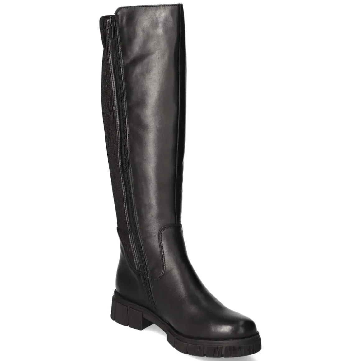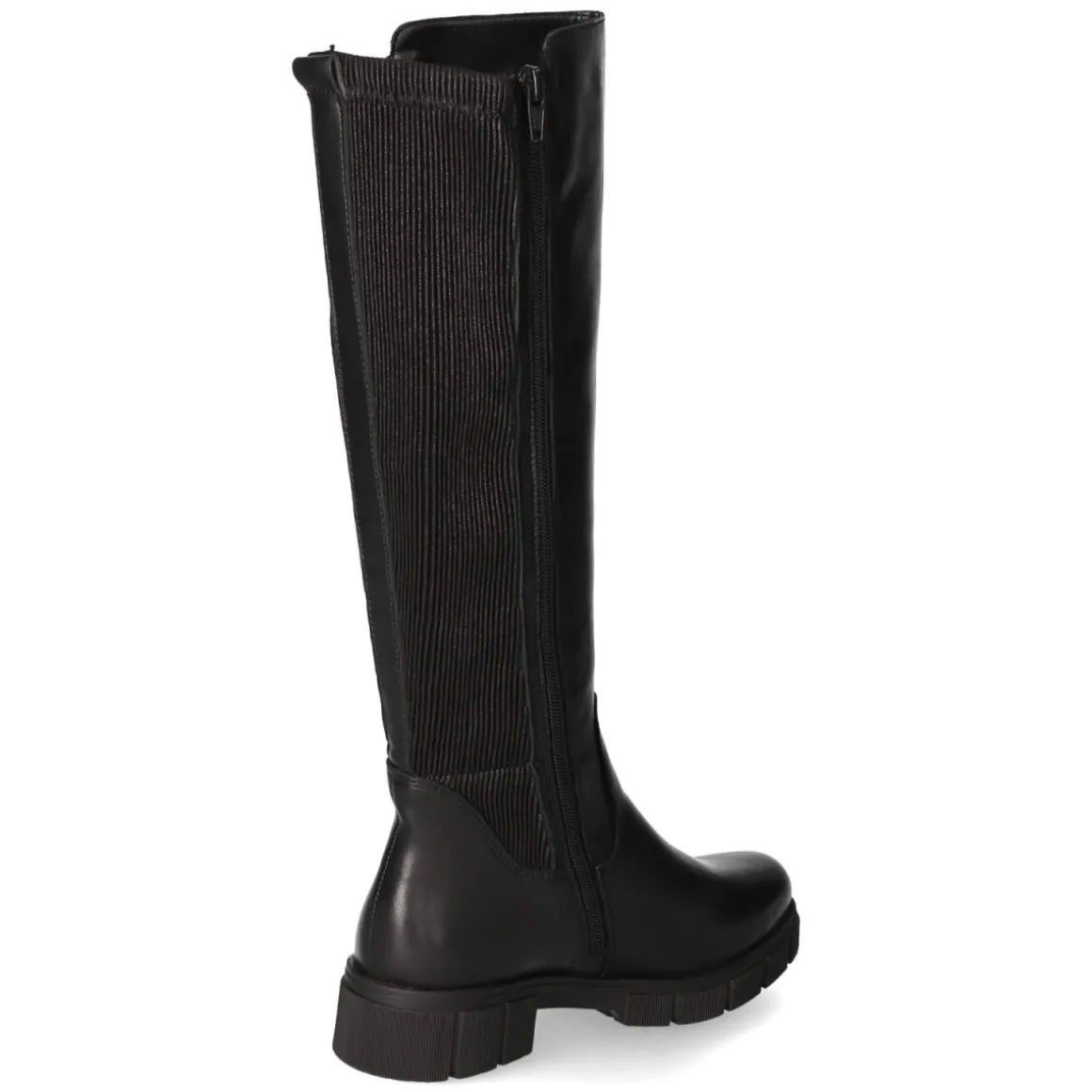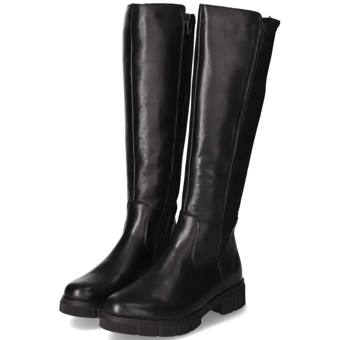 Der Remonte Stiefel in klassischem Schwarz verbindet einen modernen Material-Mix mit funktionalen Details. Die Schaftfront aus Glattleder trifft auf einen Wadenbereich in markanter Cordoptik und bildet zusammen mit dem variablen Schaft eine harmonische Silhouette, die sich unterschiedlichen Beinumfängen anschmiegt. Ein 3 cm hoher Blockabsatz sorgt für sicheren Stand, die flexible, rutschfeste Sohle für Trittsicherheit in der Stadt. Dank Reißverschluss und kleiner Anziehhilfe gelingt das Hineinschlüpfen mühelos. Die runde Spitze bietet Komfort, die textile Decksohle und das leichte Futter wärmen an kühlen Tagen, ohne aufzutragen. Mit einer Schafthöhe von ca. 37 cm und einem Umfang von ca. 36 cm fällt das Modell normal aus und lässt sich vielseitig stylen. Modetipp: Besonders stimmig zu Strickkleid und Oversize-Blazer oder zu Slim-Jeans und Wollmantel.