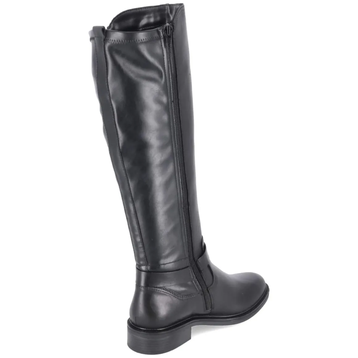 Dieser Stiefel von Remonte in klassischem Schwarz verbindet urbanen Look mit durchdachtem Komfort. Der robuste Material-Mix aus Leder und Synthetik erhält durch den zierenden Riemen mit Schnalle am Knöchel eine feminine Note. Mit rund zulaufender Spitze, 3,5 cm hohem Blockabsatz und flexibler, rutschfester Laufsohle entsteht ein souveränes Laufgefühl im Alltag. Der Varioschaft mit leicht stretchigem Schaft passt sich dem Bein an; Schafthöhe ca. 40 cm, Umfang ca. 36 cm. Leichtes Futter wärmt an kühlen Tagen, der unkomplizierte Einstieg über Reißverschluss und Anziehlasche spart Zeit. Wechselfußbett und verstärkter Fersenbereich sorgen für Stabilität, die Decksohle aus Textil erhöht den Tragekomfort. Fällt normal aus. Modetipp: Zu Strickkleid und Oversize-Mantel entsteht eine elegante Silhouette, akzentuiert mit einer strukturierten Crossbody-Bag.