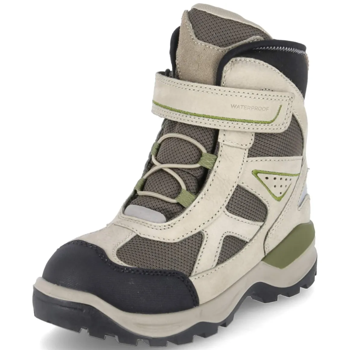 Ecco SNOW MOUNTAIN in sattem Grün begleitet Kinder zuverlässig durch frostige Tage. Das Obermaterial aus Leder und Synthetik schützt robust, während wasserfeste Eigenschaften und atmungsaktive Zonen für trockenes, ausgeglichenes Klima sorgen. Warmes Textilfutter umschließt den Fuß angenehm, die runde Spitze bietet natürliche Zehenfreiheit. Elastikband und bequemer Klettverschluss erleichtern das An- und Ausziehen, der gepolsterte Einstieg schont empfindliche Knöchel. Der verstärkte Fußrahmen gibt Stabilität auf unebenem Terrain, und die rutschfeste Profilsohle greift sicher auf Schnee und Matsch. Das herausnehmbare Fußbett ist pflegeleicht und ideal für individuelle Einlagen, die Passform fällt normal aus. Modetipp: Mit wattierter Steppjacke und Strickmütze in Creme setzt das frische Grün einen lebhaften Akzent.