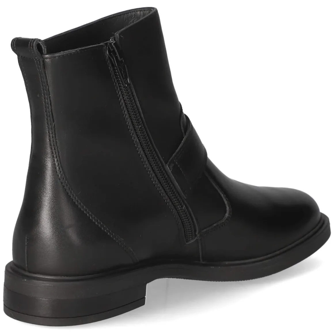 Die schwarzen Damen-Stiefeletten von Paul Green verbinden klare Linien mit hochwertiger Verarbeitung. Glattes, langlebiges Echtleder formt eine zeitlose Silhouette mit runder Spitze, während der bequeme Reißverschlußeinstieg und eine kleine Anziehhilfe schnelles Hineinschlüpfen ermöglichen. Ein gepolstertes Lederfußbett und die Lederdecksohle sorgen für angenehm gedämpften Auftritt, die flexible, griffige Laufsohle bietet Halt auf urbanen Wegen. Der 3 cm hohe Blockabsatz unterstützt natürliches Abrollen und macht die Stiefelette zum ausdauernden Alltagsbegleiter. Eine verstärkte Ferse fördert Stabilität, der feine Zierriemen mit goldener Zierschnalle setzt einen eleganten Akzent. Das Modell fällt normal aus und passt zu vielfältigen Looks – von Office bis Weekend. Modetipp: Mit gekürzten Straight-Jeans, Wollmantel und dezentem Goldschmuck harmoniert die Zierschnalle perfekt und verleiht dem Outfit klaren Modern Chic.