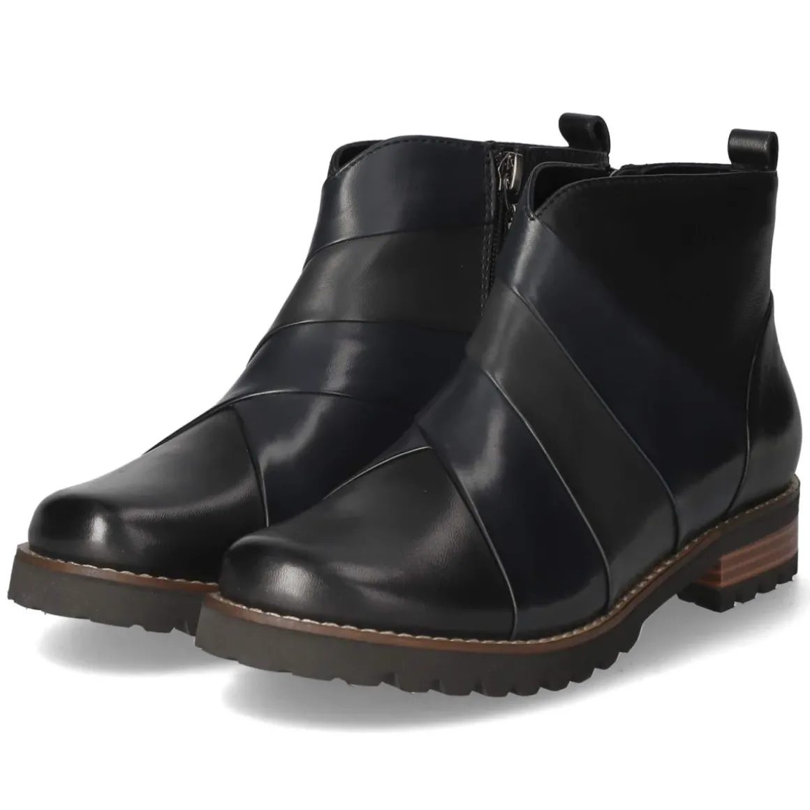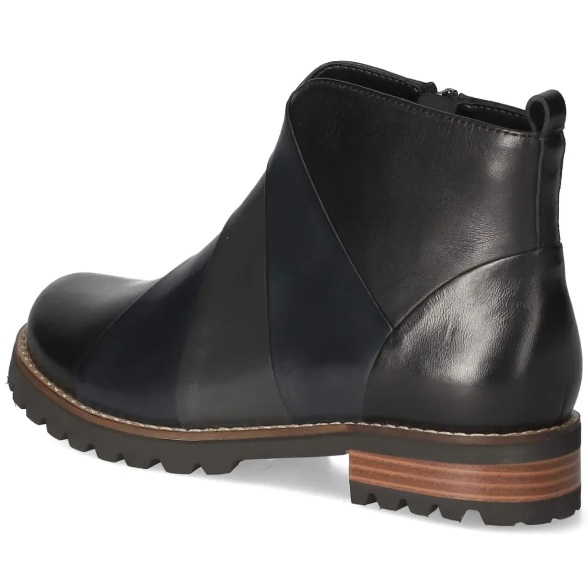 Die Kaerlek Stiefeletten in tiefem Schwarz verbinden urbanen Stil mit entspanntem Komfort. Glattes, atmungsaktives Echtleder umschließt den Fuß, während ein leichtes Futter an kühlen Tagen wohltuende Wärme spendet. Drei breite Zierstreifen über dem Spann setzen einen markanten, grafischen Akzent und betonen die klare Silhouette. Dank Reißverschluss und Anziehlasche gelingt der Einstieg mühelos, die verstärkte Ferse gibt verlässlichen Halt. Der 3 cm hohe Blockabsatz bietet Stabilität auf langen Bummeltouren, unterstützt von einer flexiblen, rutschfesten Laufsohle. Die Decksohle aus Textil und Synthetik sowie die runde Spitze sorgen für angenehmes Tragegefühl, die Passform fällt normal aus. Modetipp: Mit verkürzter Straight-Jeans und einem strukturierten Wollmantel entsteht ein zeitloser Look mit moderner Note.