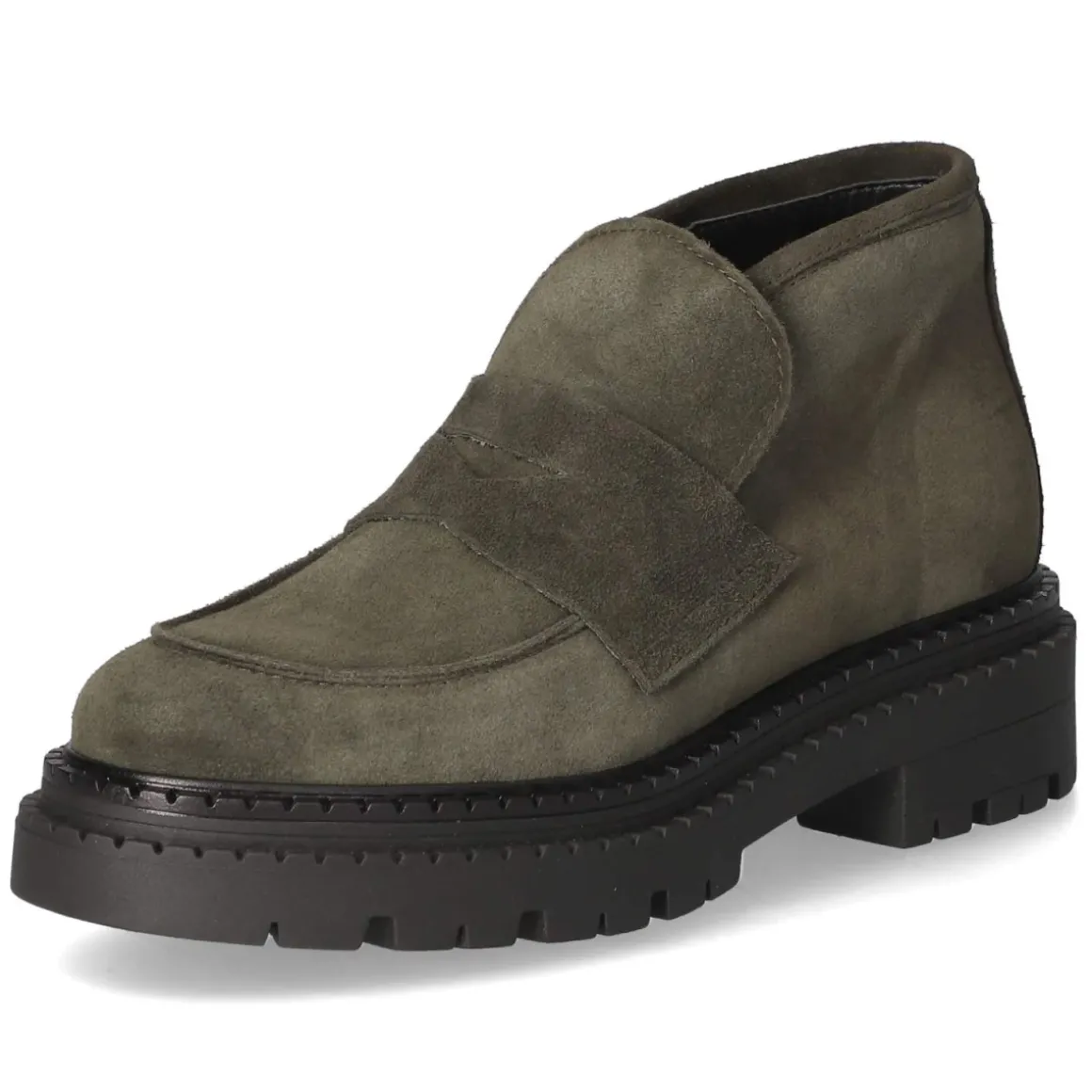 Die Stiefeletten CARLA 2 von Kaerlek verbinden zeitloses Design mit durchdachter Funktion. Das grüne Obermaterial aus hochwertigem Rauleder und die langlebige Echtlederverarbeitung prägen den eleganten Look, während das weiche Lederfutter und die lederne Decksohle für ein angenehmes Fußklima sorgen. Der unkomplizierte Einstieg gelingt dank Elastikeinsatz auch ohne Verschluss mühelos. Mit rund zulaufender Spitze, verstärkter Ferse und rutschfester Laufsohle entsteht stabiler Halt im Alltag. Der 4,5 cm hohe Blockabsatz bietet eine komfortable Höhe, die den Fuß entspannt trägt. Dezente Wulstnaht und ein Zierriemen über dem Spann setzen stilvolle Akzente, die das Modell aufwerten. Die reguläre Passform macht die Stiefelette zum vielseitigen Begleiter von früh bis spät. Modetipp: Zur Wide-Leg-Jeans und einem kurz geschnittenen Wollblazer kombinieren, dazu ein feiner Gürtel in Cognac als warmer Kontrast zum Grün.
